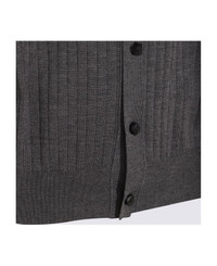 Men's Ribbed Wool Cardigan with Leather Buttons