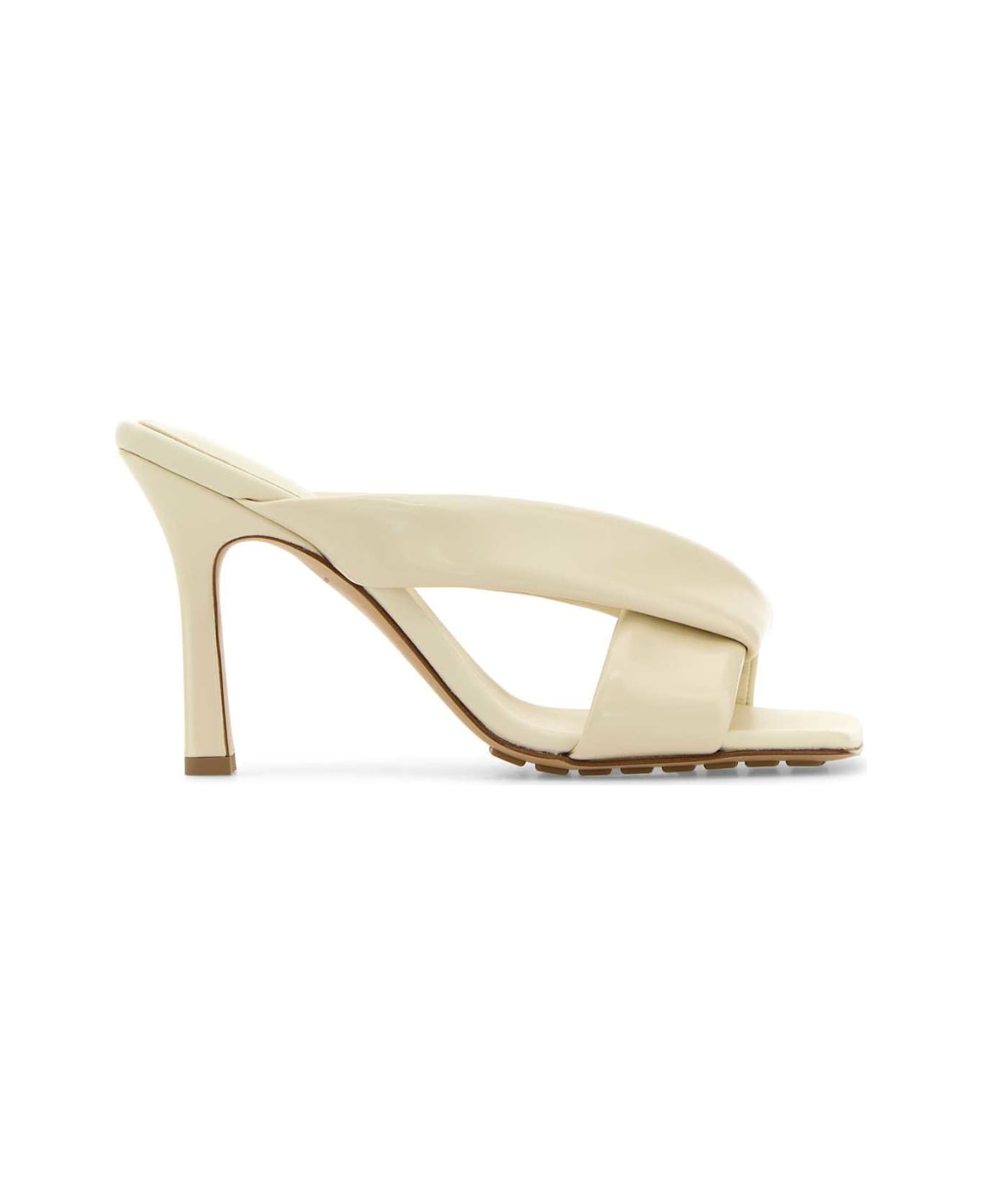 Ivory Leather Riva Mules from Bottega Veneta Made in: Italy Color: SEASALT Size and fit: - Heel height: 9 cm Model number: 827612V3H909031