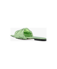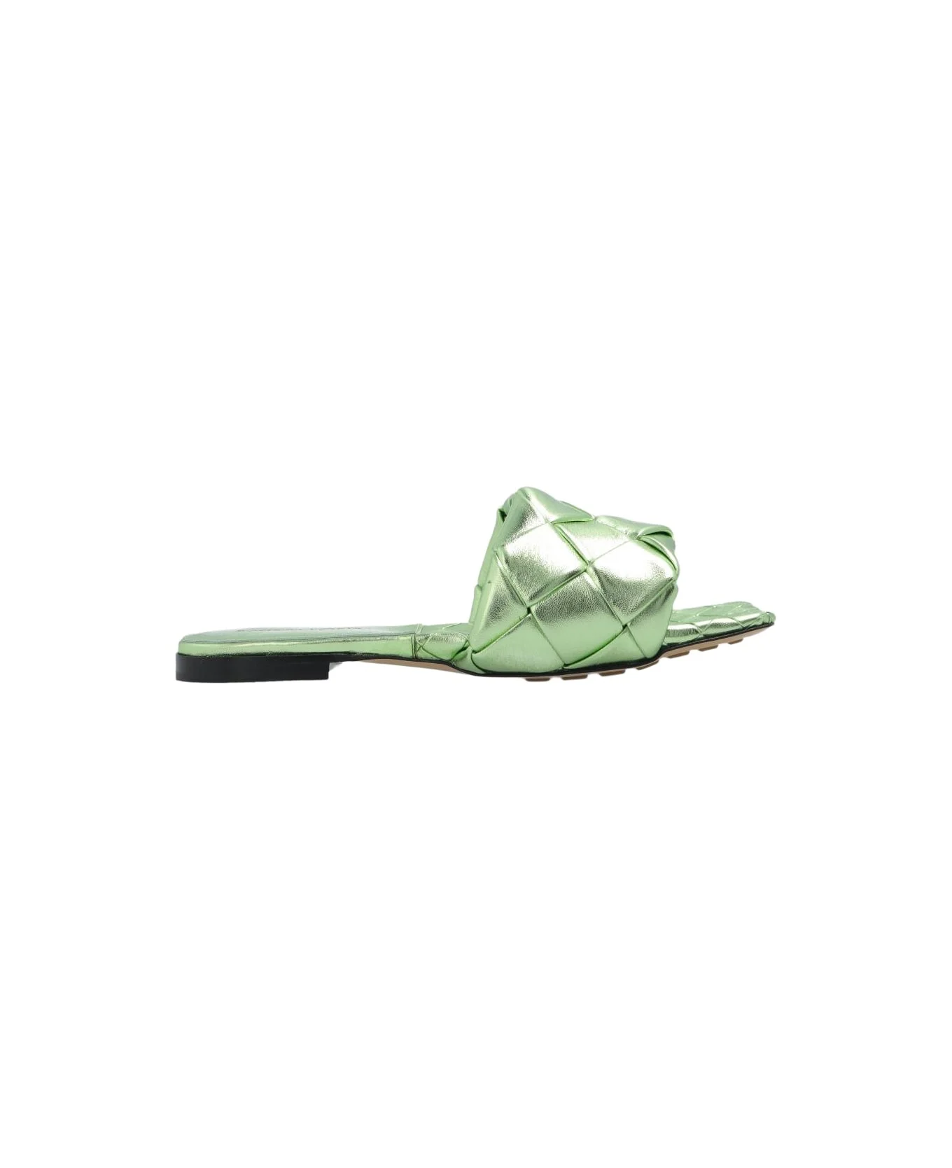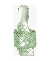 Green 'Lido' slides from Bottega Veneta. Made from metallized lamb leather accentuated with the brand's signature Intreccio weave, this model features a square toe and a beige leather sole with anti-skidding rubber inserts for increased stability. Composition: Outer Layer: Leather Inner Layer: Leather Sole: Leather Rubber Made in: Italy Color: GREEN Size and fit: - true to size fit Model number: 608853V29N03505