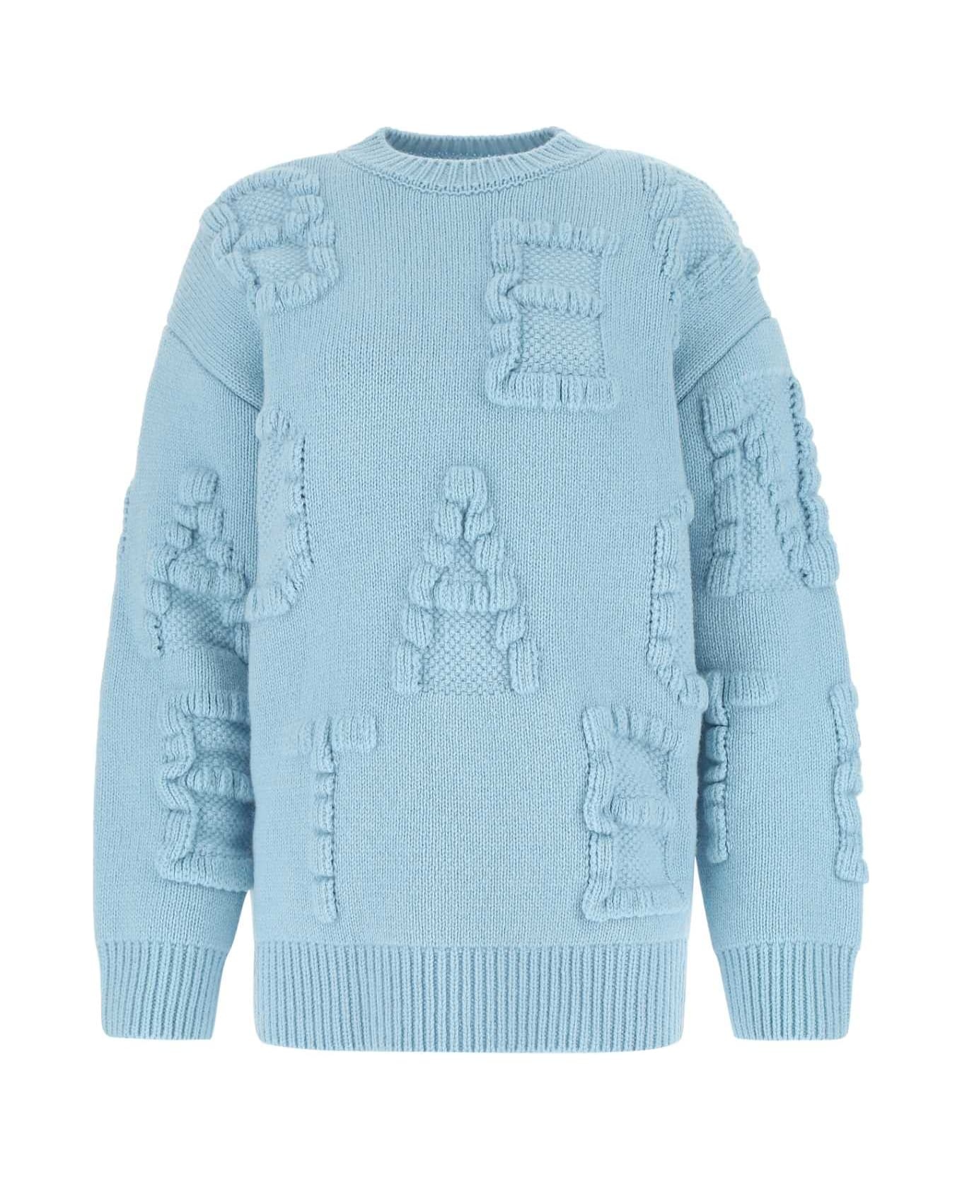 Light Blue Stretch Wool Blend Shetland Alphabet Oversize Sweater from Bottega Veneta Color: 8955 Model number: 707883V26T08955