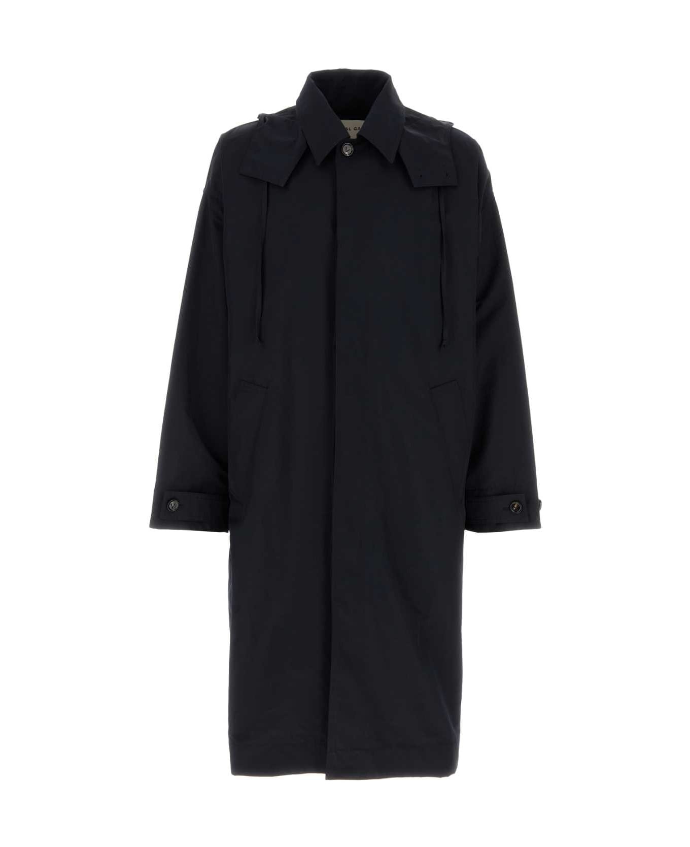 Navy Blue Nylon Blend Trench Coat