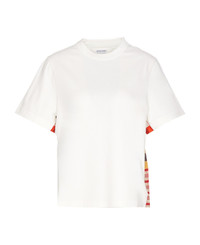 Round-neck contrast-panel cotton-jersey T-shirt