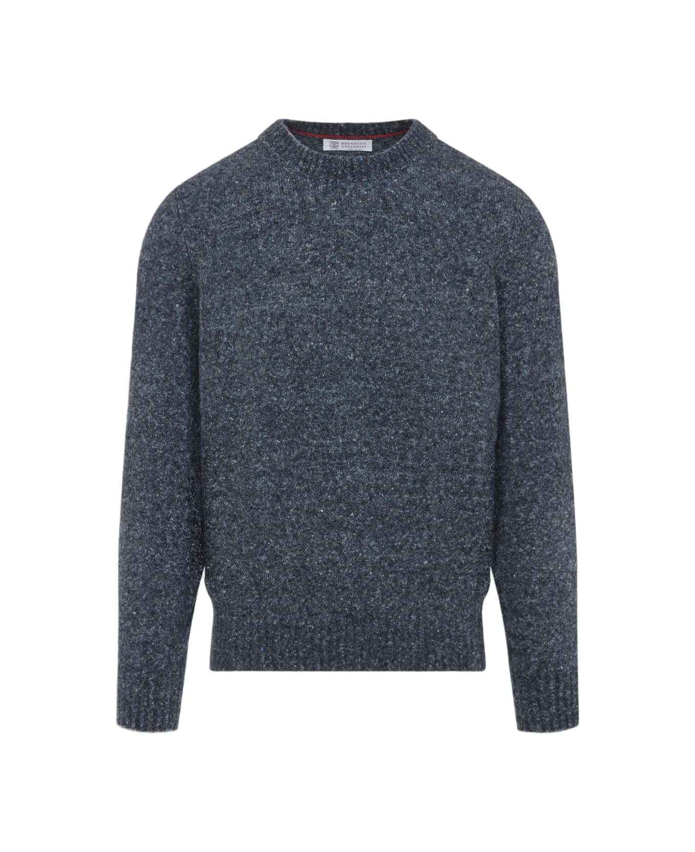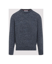 Brunello Cucinelli Blue Alpaca Pullover. Crafted from blue alpaca wool and silk blend, round neckline, long sleeves, ribbed edges, straight hem. Made in: Italy Color: Denim Model number: MOH709200CLW60