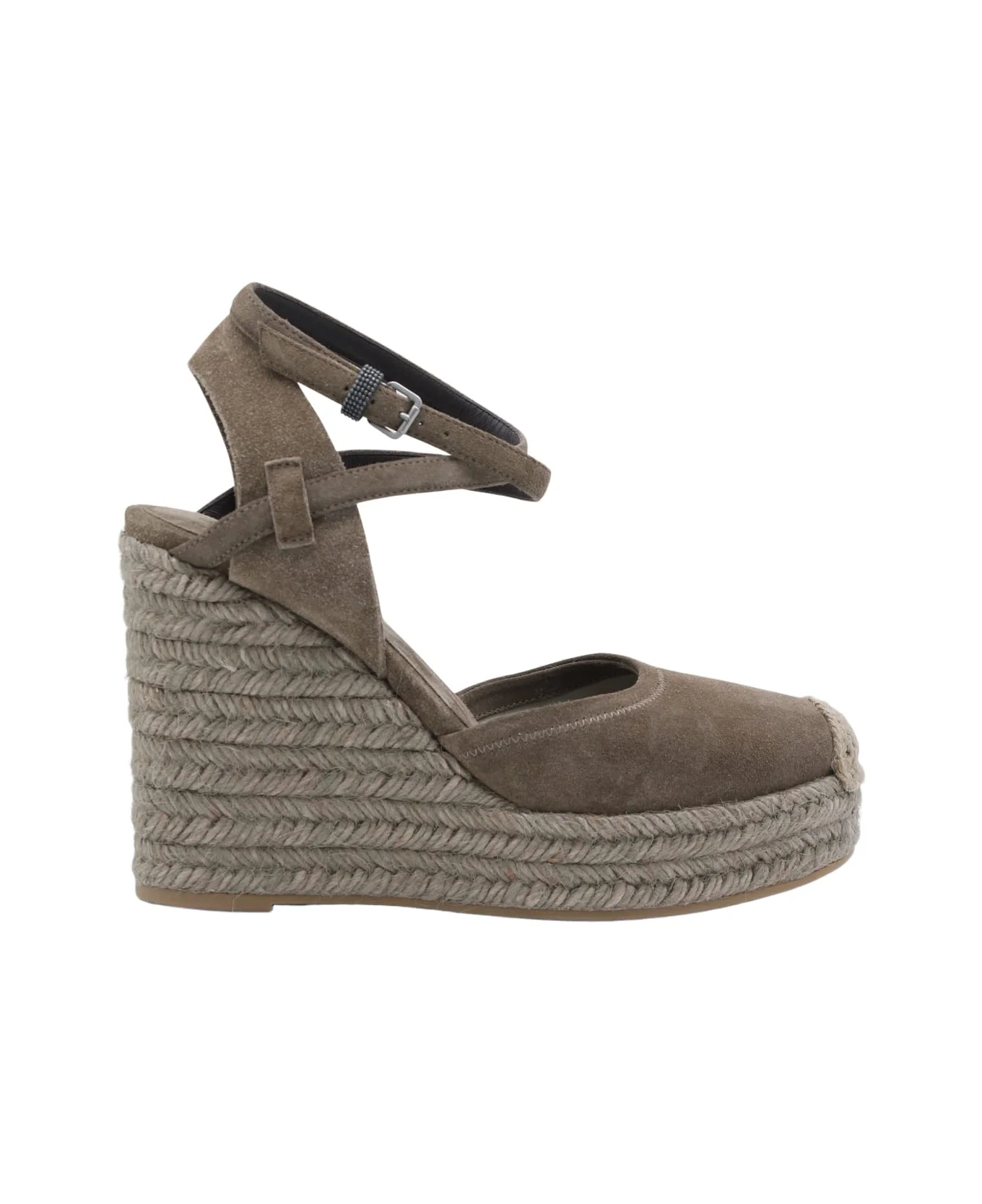 Beige leather espadrillas from Brunello Cucinelli featuring round toe, ankle buckle fastening, wedge with raffia and leather sole. Composition: _cover, 100% Le - Sole, 100% Le Made in: Italy Color: SUMMER TORBA Model number: MZSFG3150C8921