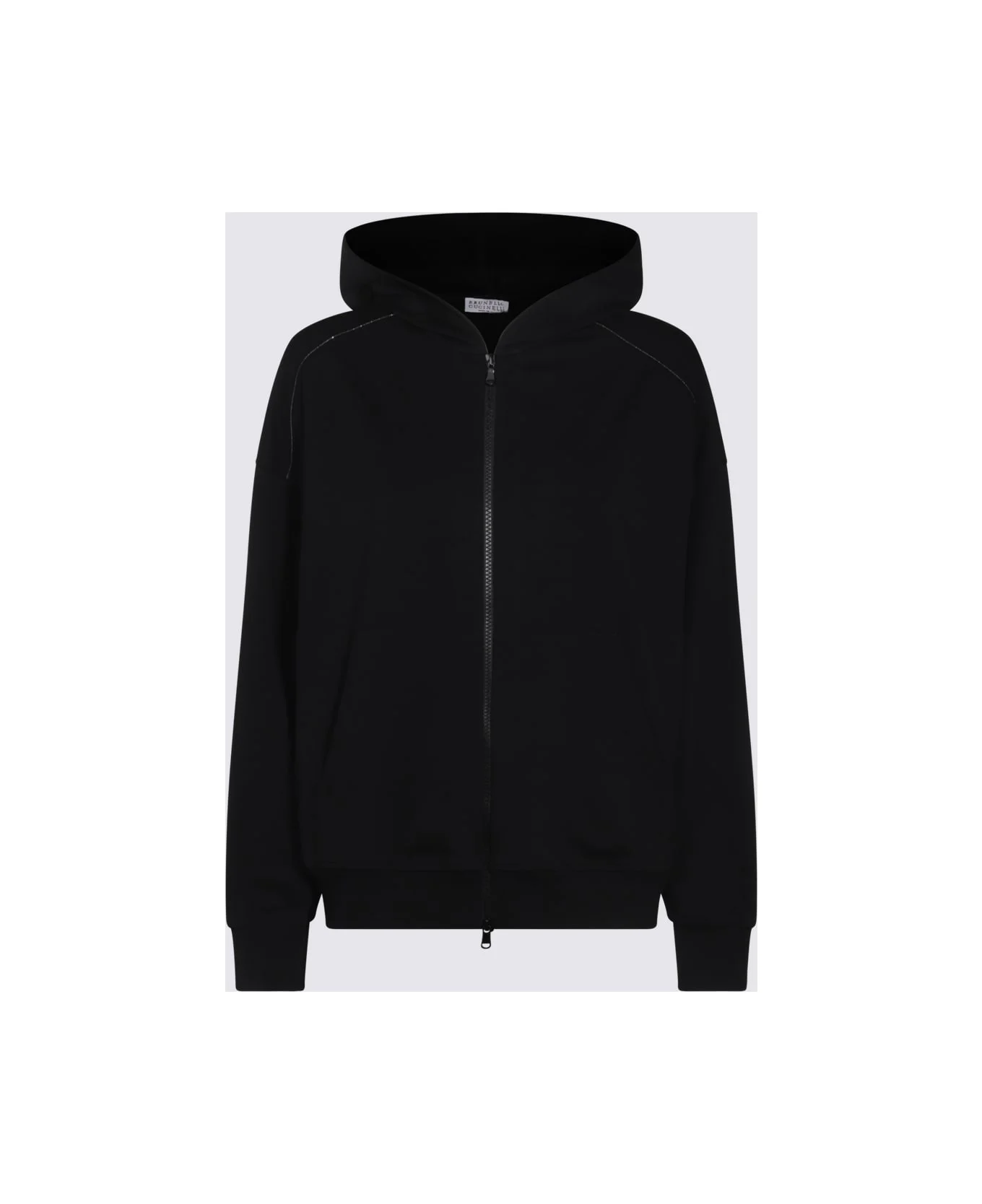 Black cotton sweatshirt from Brunello Cucinelli featuring hood, zip fastening, ribbed cuffs and hem, pockets and regular vestibility. Composition: _, 98% Cotton, 2% Elastane Made in: Italy Color: Black Model number: MH827FB706C101