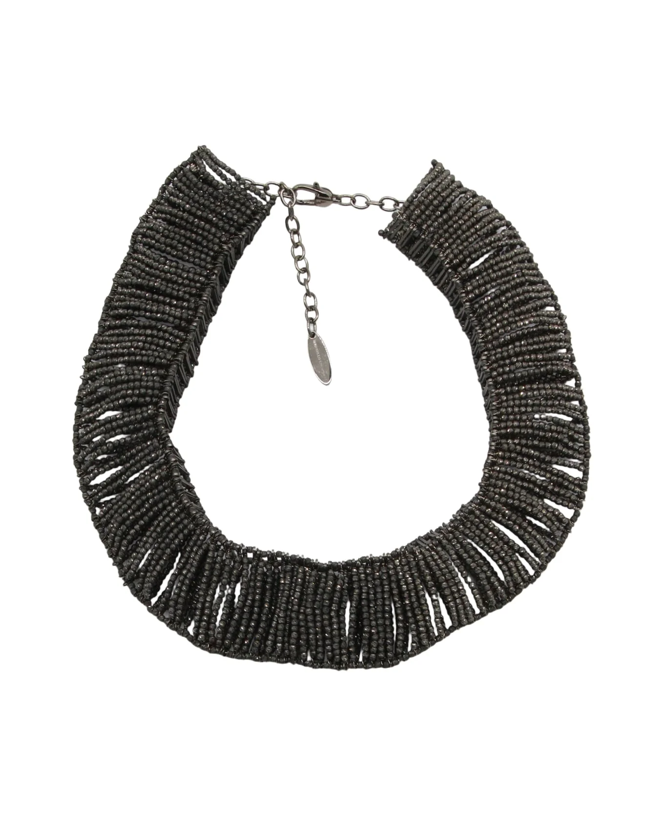 Black necklace from Brunello Cucinelli featuring silver tone hardware. Composition: _, 100% Fe Made in: Italy Color: RODIO NERO Model number: MCOW9LA55C044