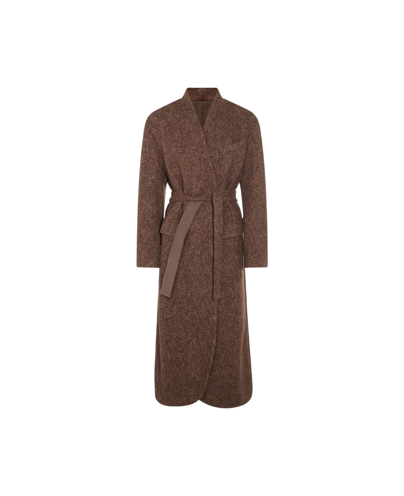 Belted wool and cashmere-blend bouclé coat Brown