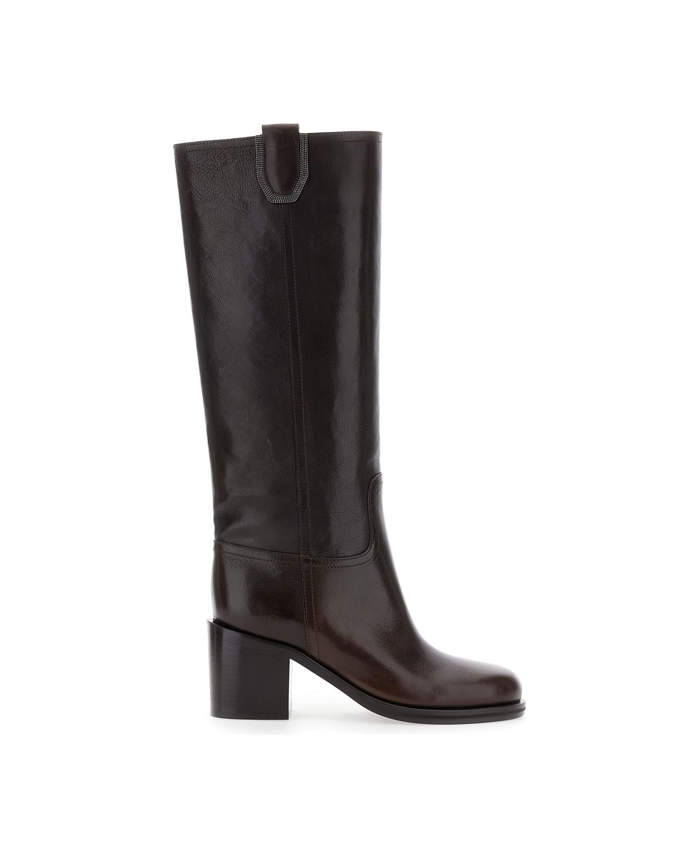 Brown Knee-lenght Boots With Monil Detail In Leather Woman