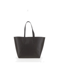 Brown Tote Bag With Logo Lettering On The Front And Geometric Panels Design In Leather Woman