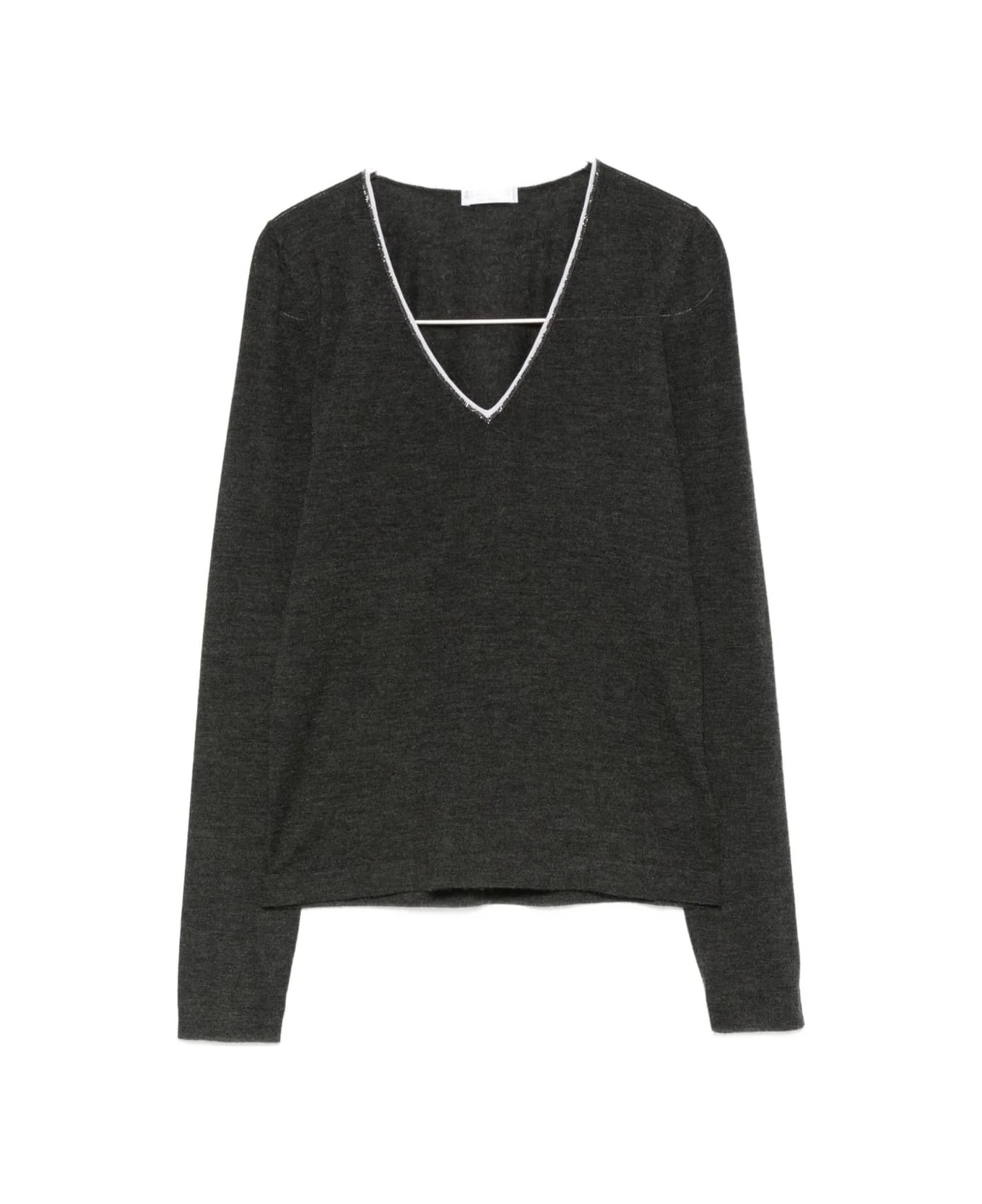 grey v-neck long sleeves ribbed neckline embellished neckline Composition: Eco Brass, 100% , Cashmere, 70% , Silk, 30% Made in: Italy Color: Grey Model number: M13836502C055W