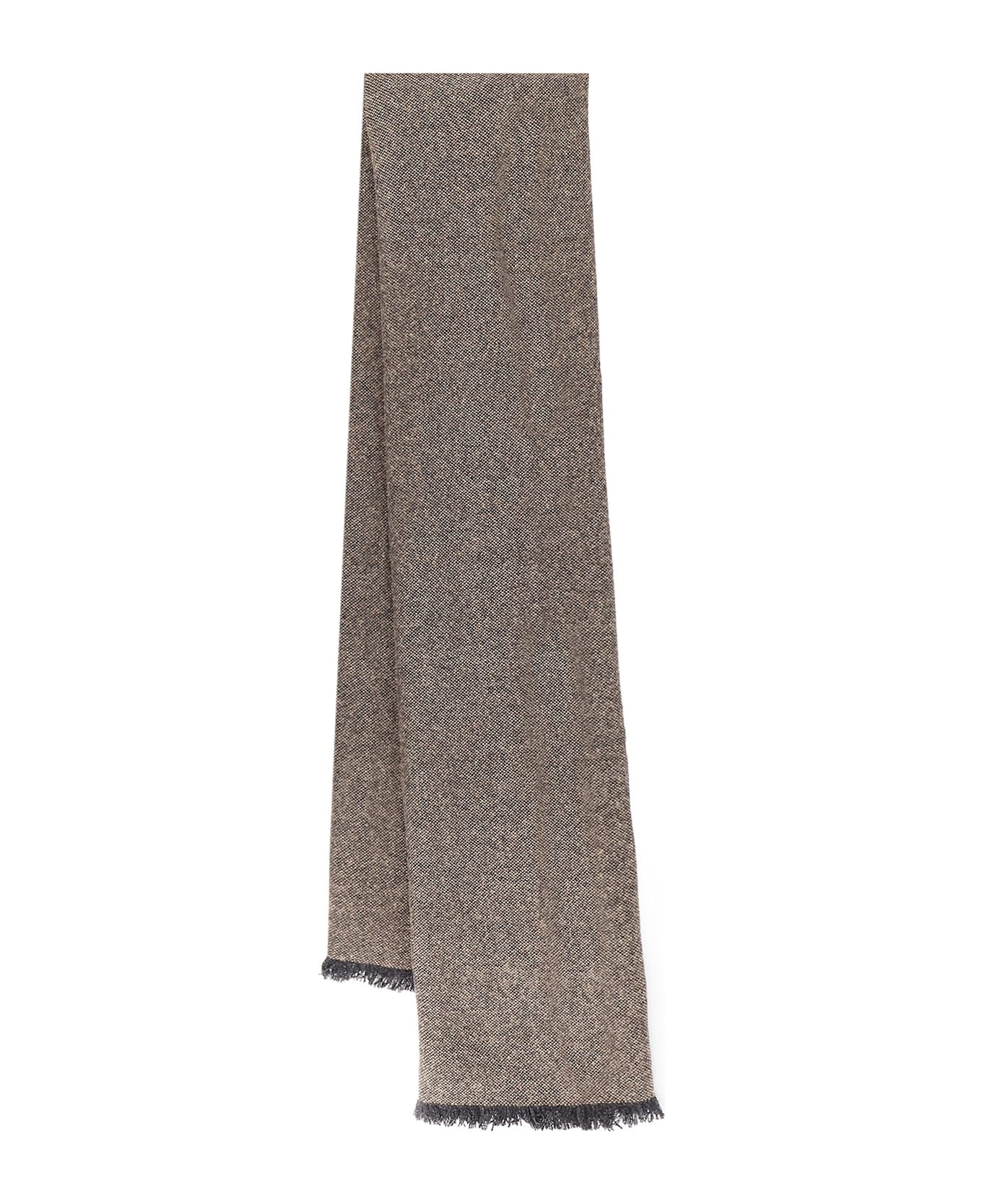 Frayed profiles Lurex detail Internal logo label Made in Italy 59% cashmere 25% alpaca 10% polyamide 3% metallic fiber 3% polyester W: 200 cm x H: 70 cm SKU: MSCDARW30CC685 Made in: Italy Color: BROWN+ANTRACITE Model number: MSCDARW30CC685