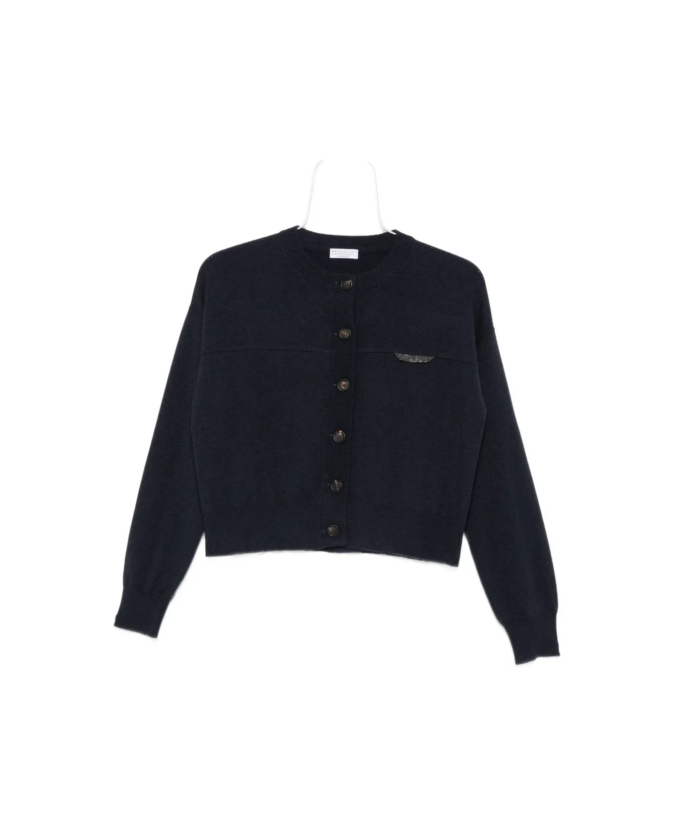 navy blue button fastening long sleeves round neck Composition: Eco Brass, 100% , Cashmere, 100% Made in: Italy Color: Blue Size and fit: - This piece fits true to size. We recommend you get your regular size - Model is 1,75m / 5ft 8in wearing size S Model number: M12212606PC4224