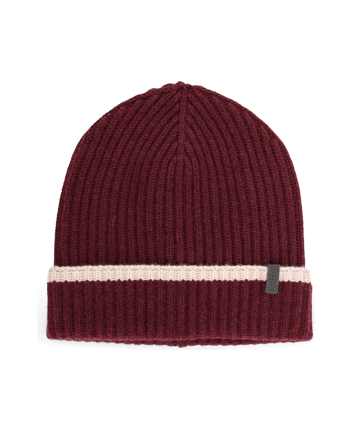 Ribbed processing With fold Contrasting profile Monili detail Made in Italy 100% cashmere SKU: M12504979CGU01 Made in: Italy Color: AMARANTO+BEIGE Model number: M12504979CGU01