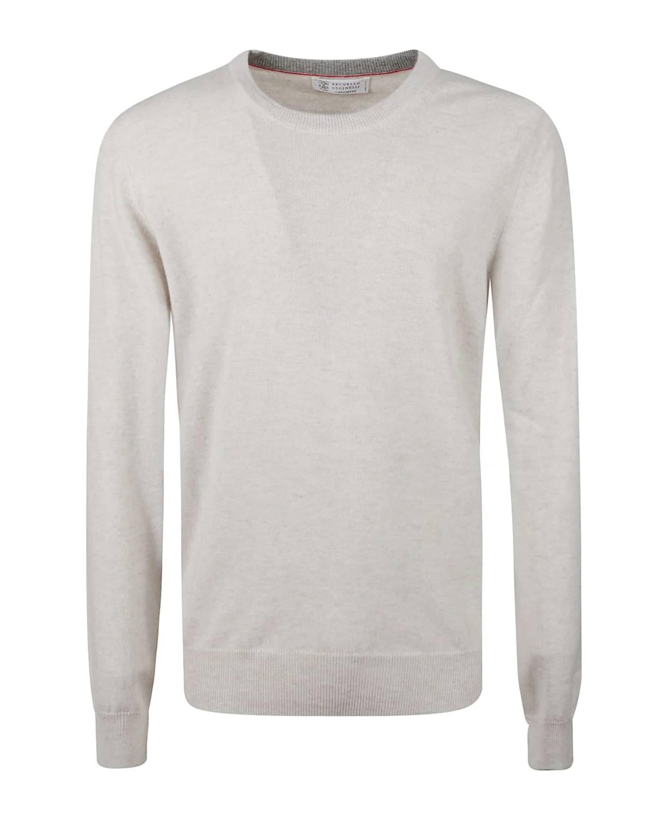 Grey sweater by BRUNELLO CUCINELLI with crew neck and long sleeves. Composition: 100% Cashmere Made in: Italy Color: White Model number: M2200100CYG71