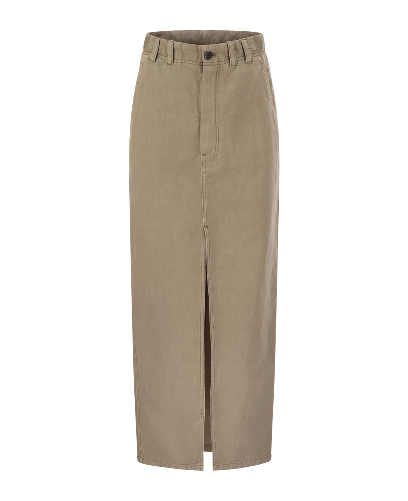 Chino Skirt In Garment-dyed Cotton And Linen Cover
