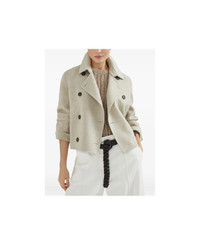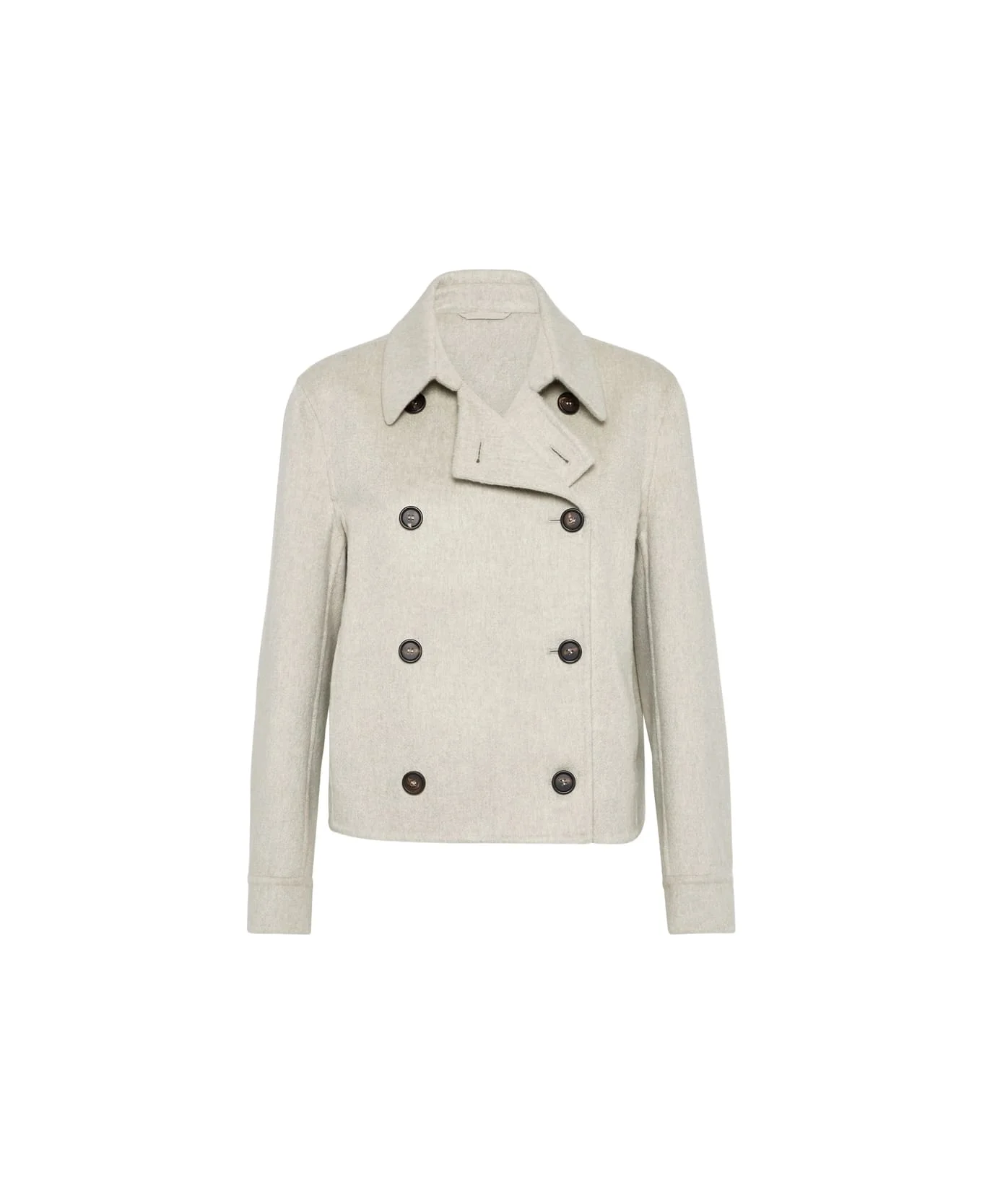 Hand-crafted cropped pea coat in cashmere double beaver cloth with monili