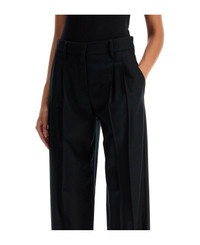Virgin wool and cashmere flannel loose straight trousers with monili