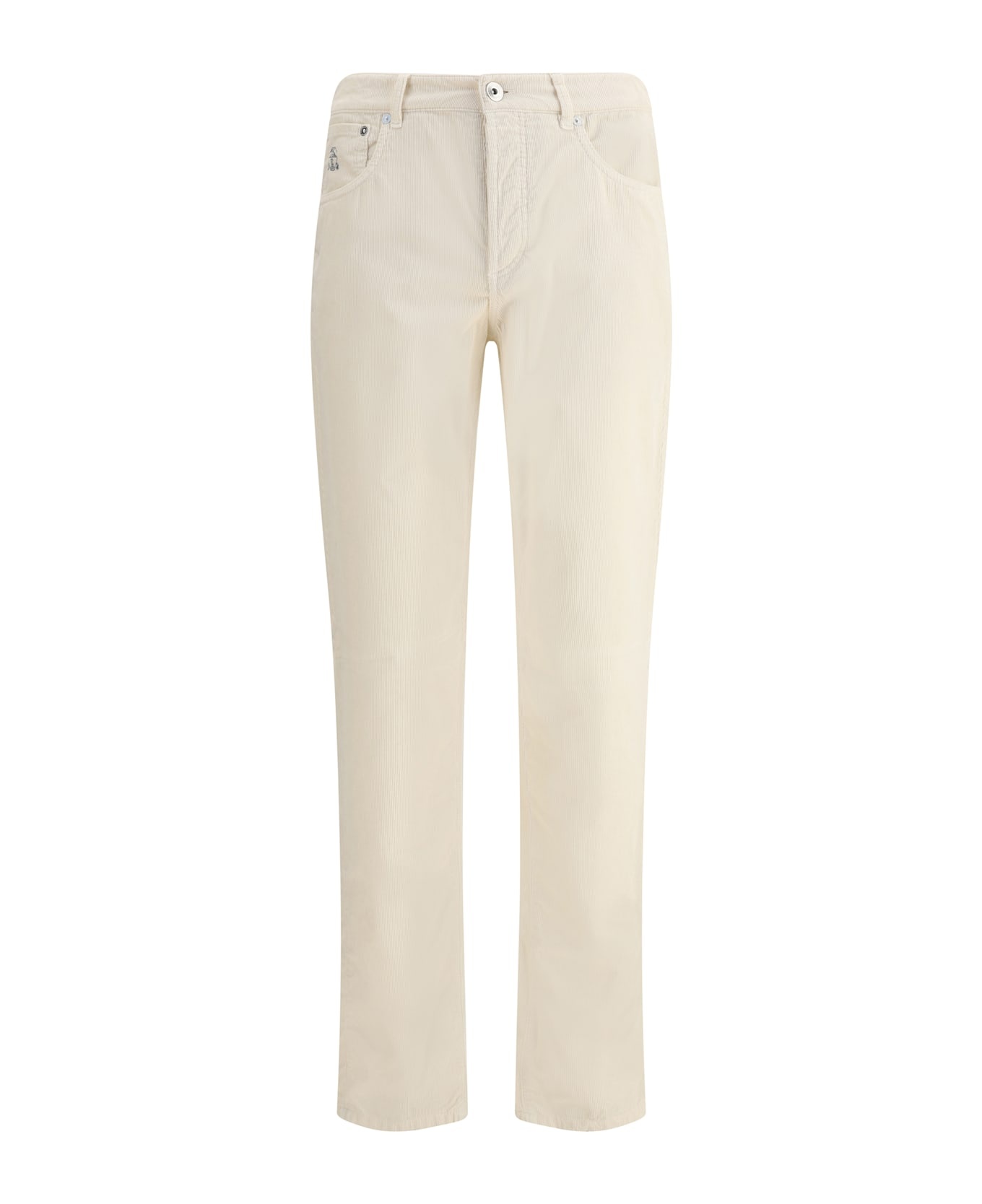 Garment-dyed Italian fit five-pocket trousers in cotton narrow wale corduroy