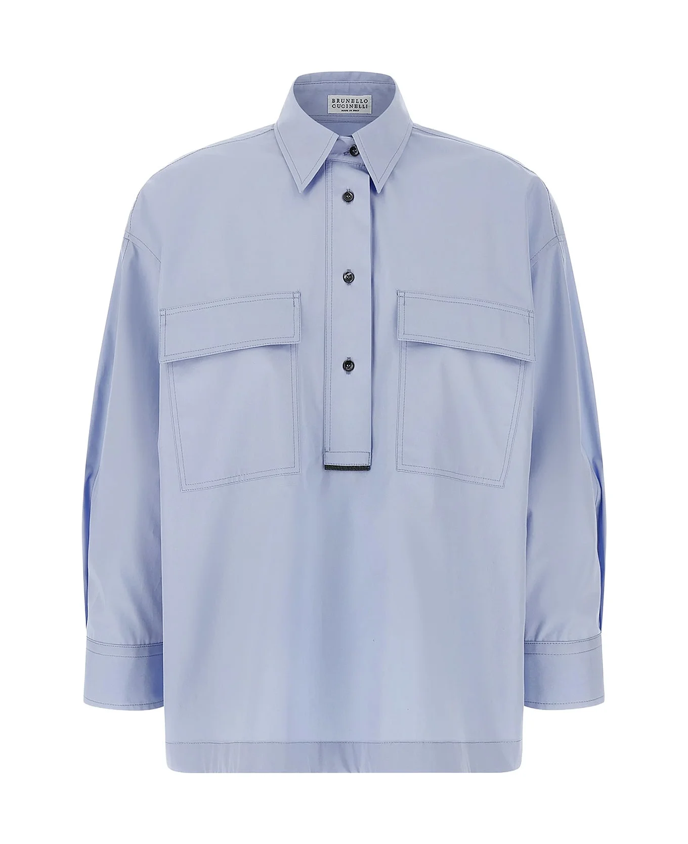 Classic collar Long sleeve Four-button closure Monili detail Boxy fit Made in Italy 100% Cotton SKU: MH772NA905C172 Made in: Italy Color: Blue Model number: MH772NA905C172