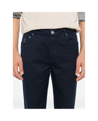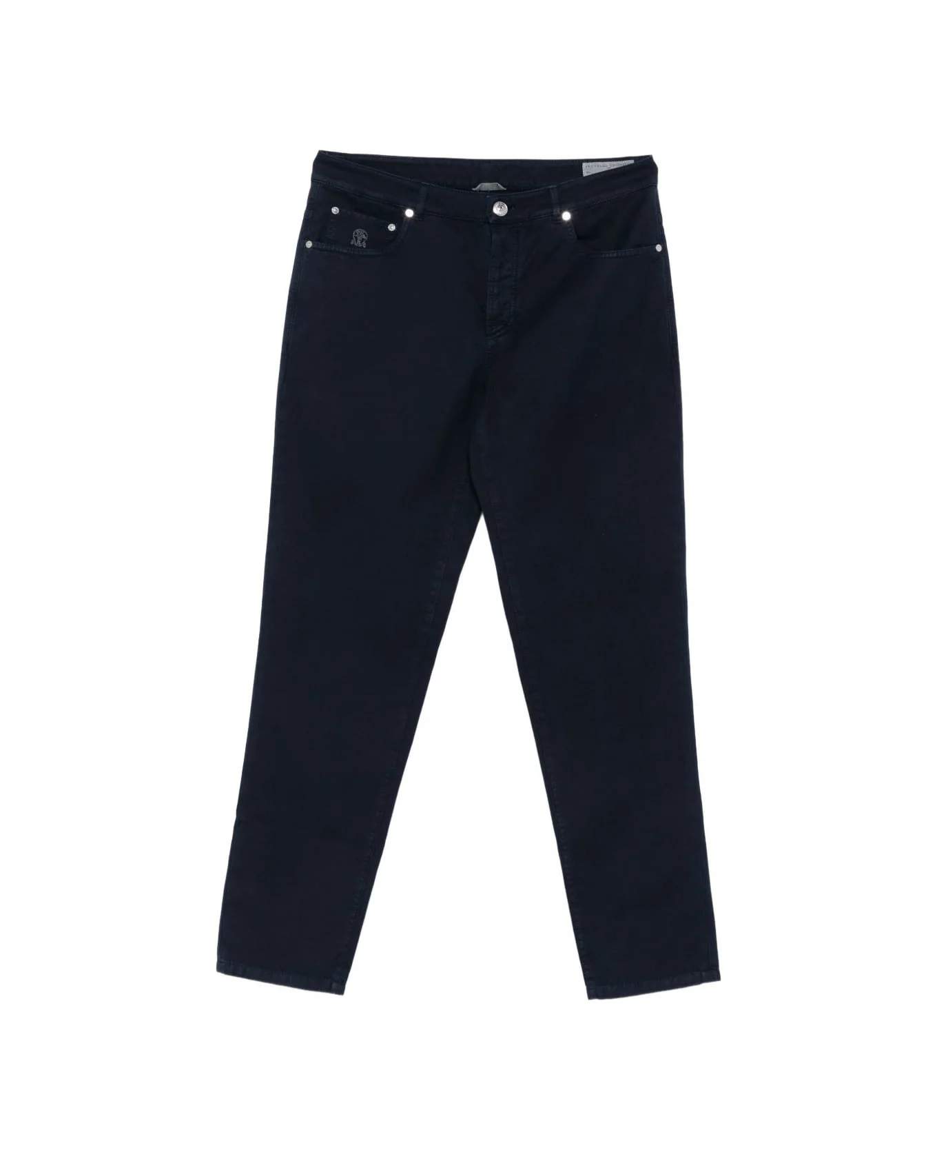 blue cotton five-pocket styling button fly logo detail mid-rise waist Composition: Outer: Cotton, 100% , Leather, 100% Made in: Italy Color: Blue Model number: M252UF1010C2517