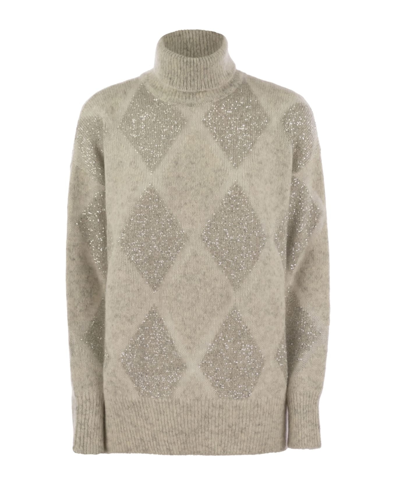 Dazzling Argyle Turtleneck Sweater In Wool And Mohair