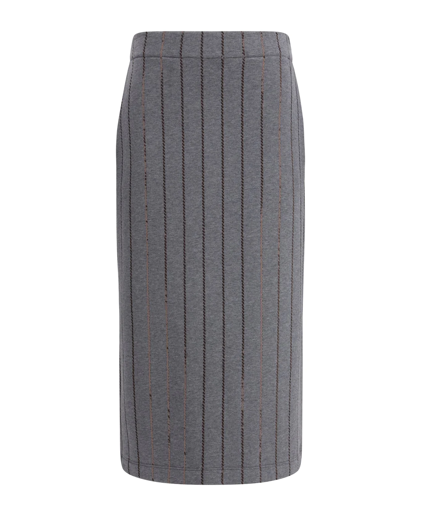 The embellished midi pencil skirt by brunello cucinelli features a fitted silhouette designed to follow the body with refined structure. the elasticated waistband offers comfort and a secure fit, while the rear slit ensures ease of movement without compromising the skirt s clean line. the surface is enriched with signature embellishments applied with precise craftsmanship, adding subtle brightness and a polished finish. a versatile, understated piece that brings a touch of artisanal elegance to modern dressing. Composition: 100% % Cotton Made in: Italy Model number: MP05NSO889C8125