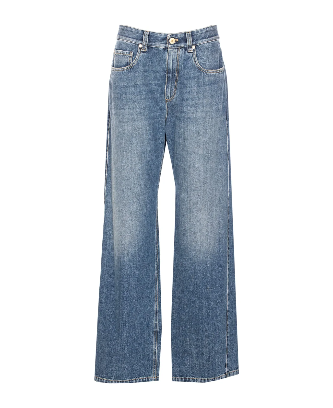 Brunello Cucinelli denim jeans, button and zip closure, 5 pockets, patch logo on the back, patch logo on the back Composition: 100% Cotton, 100% Leather Made in: Italy Color: Blue Size and fit: - EU SIZE (IT) Model number: MA095P5565C9039