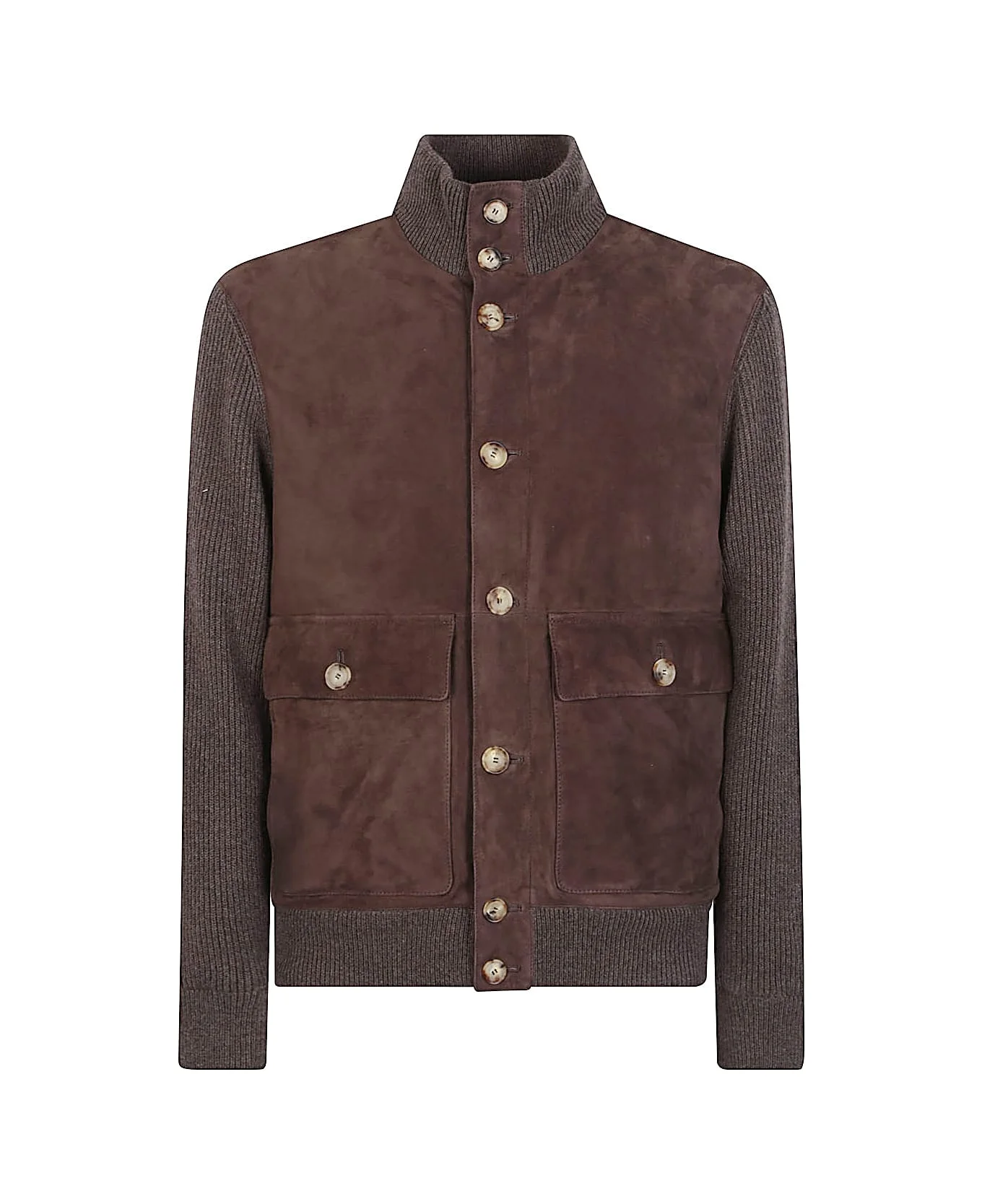 Brown leather coat, collar, cuffed sleeves and back made of cashmere with ribbed pattern, front button fastening, two patch pockets on the front with button fastening, straight ribbed hem. Composition: Outer: Leather, 100% , Cashmere, 100% , Lining: Cupro, 100% Made in: Italy Color: Brown Model number: MPCLF1955CYU72