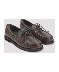 Brunello Cucinelli Raven Brown Leather Loafers. Pure raven brown leather loafers, round toe, top lace-up fastening, side strap details, slip-on style, brown sole. Made in: Italy Color: Corvino Model number: MZFLG3069PC7284