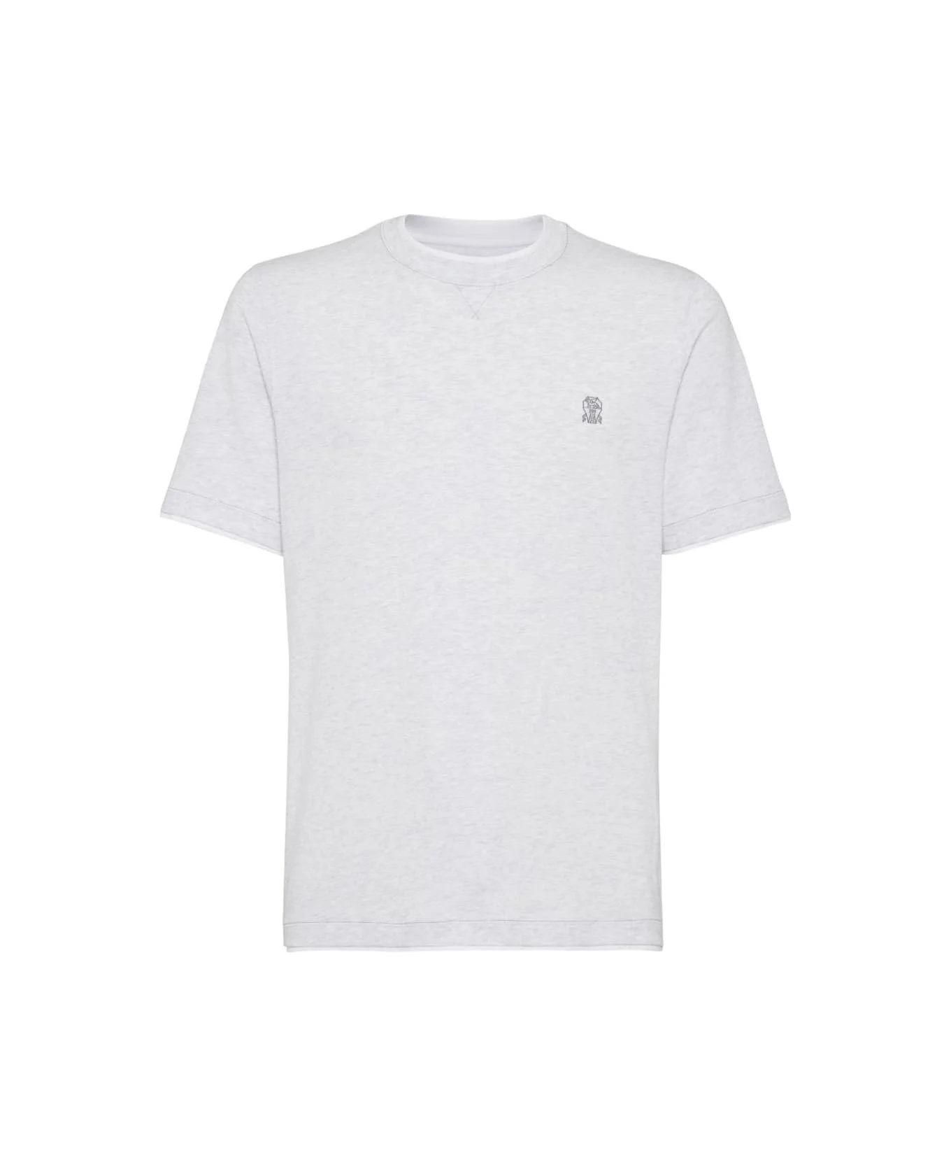 Cotton jersey crew neck T-shirt with logo and faux-layering