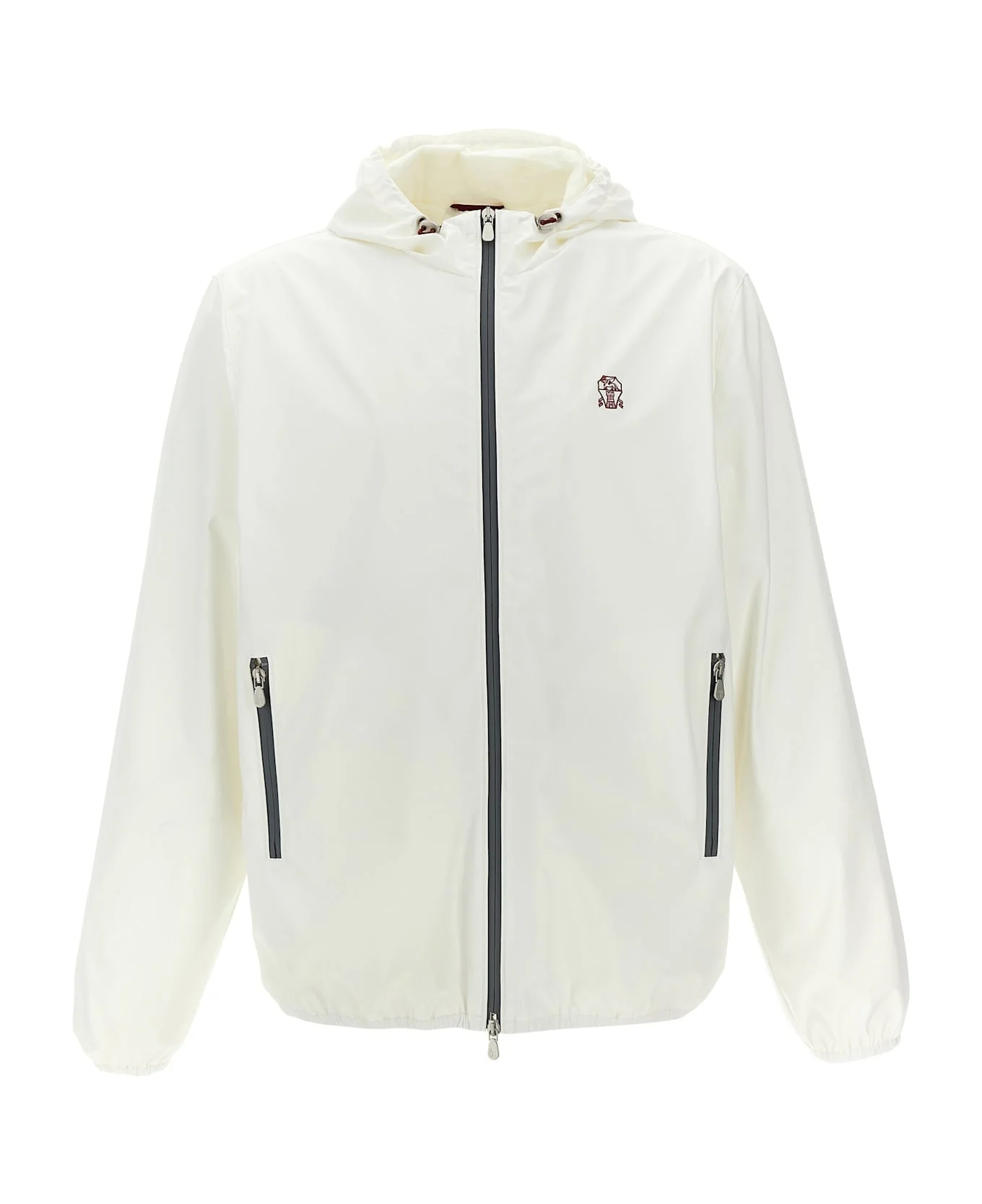Bonded nylon hooded outerwear jacket with logo