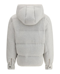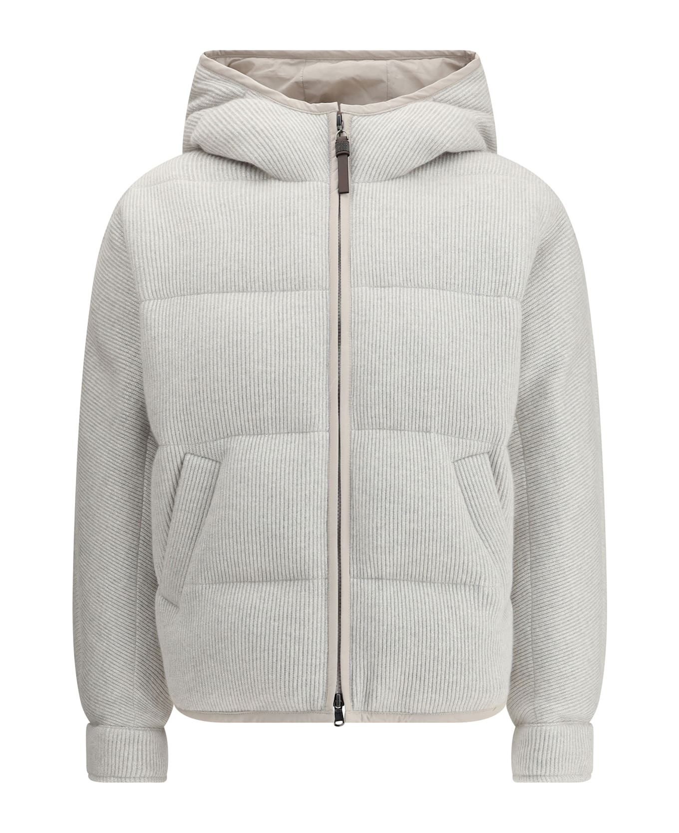 Sparkling cashmere English rib knit hooded down jacket with shiny zipper pull
