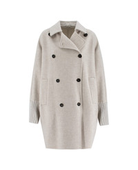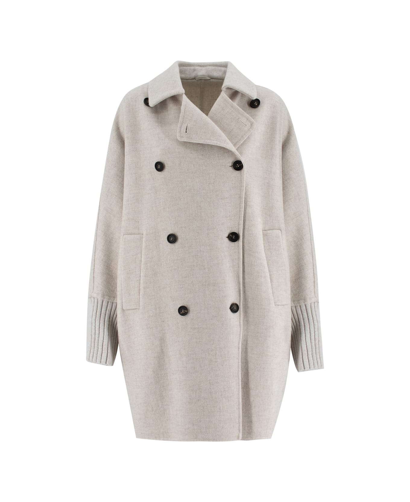 Hand-crafted coat in cozy cashmere double cloth with knit cuffs and monili