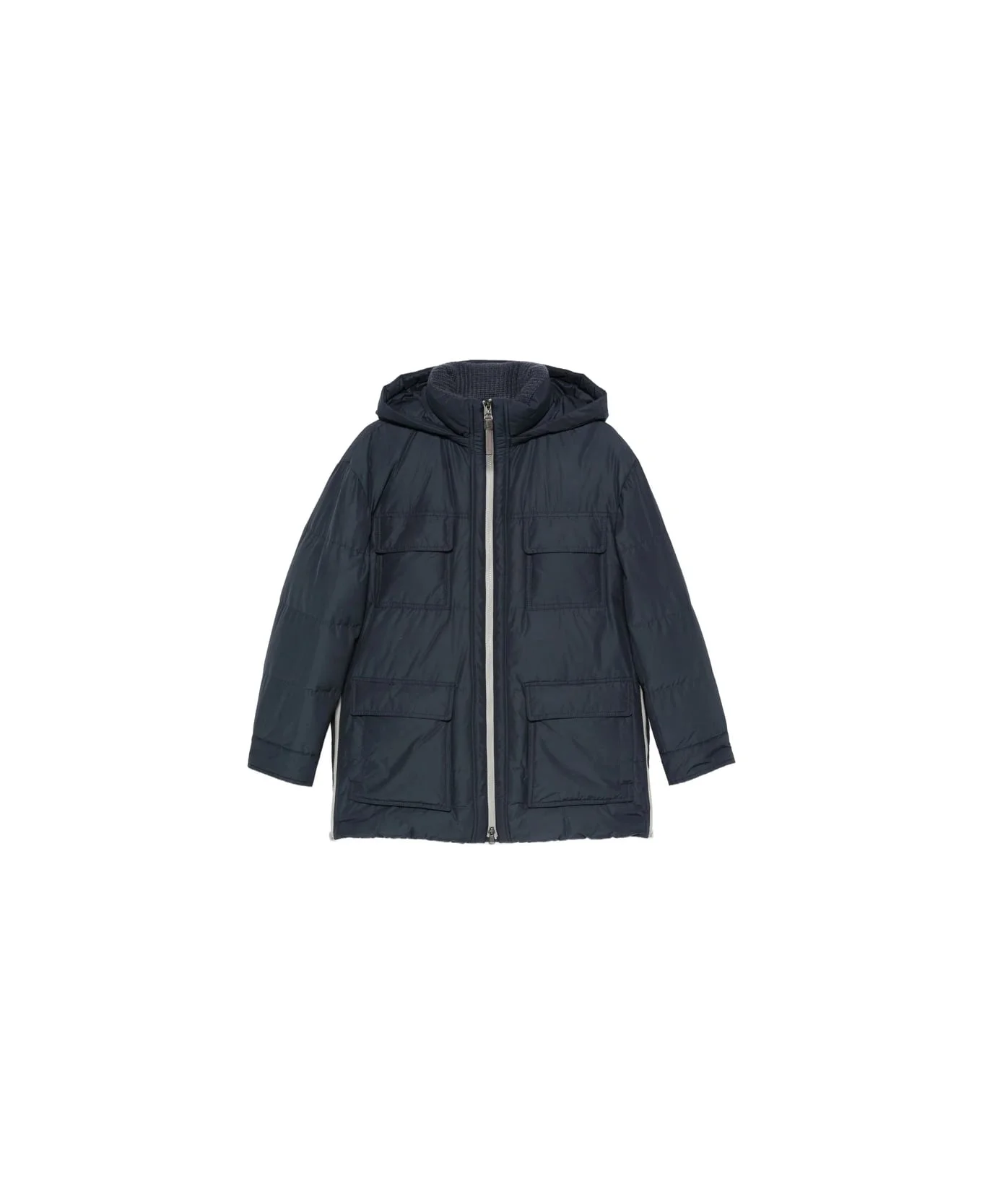 dark blue hooded neckline zip fastening flap pockets ribbed collar Made in: Italy Color: BLUE Model number: MG5017784C4072
