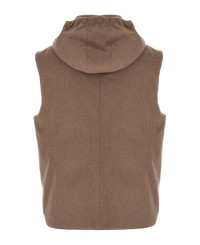 Bonded wool flannel down vest with detachable hood