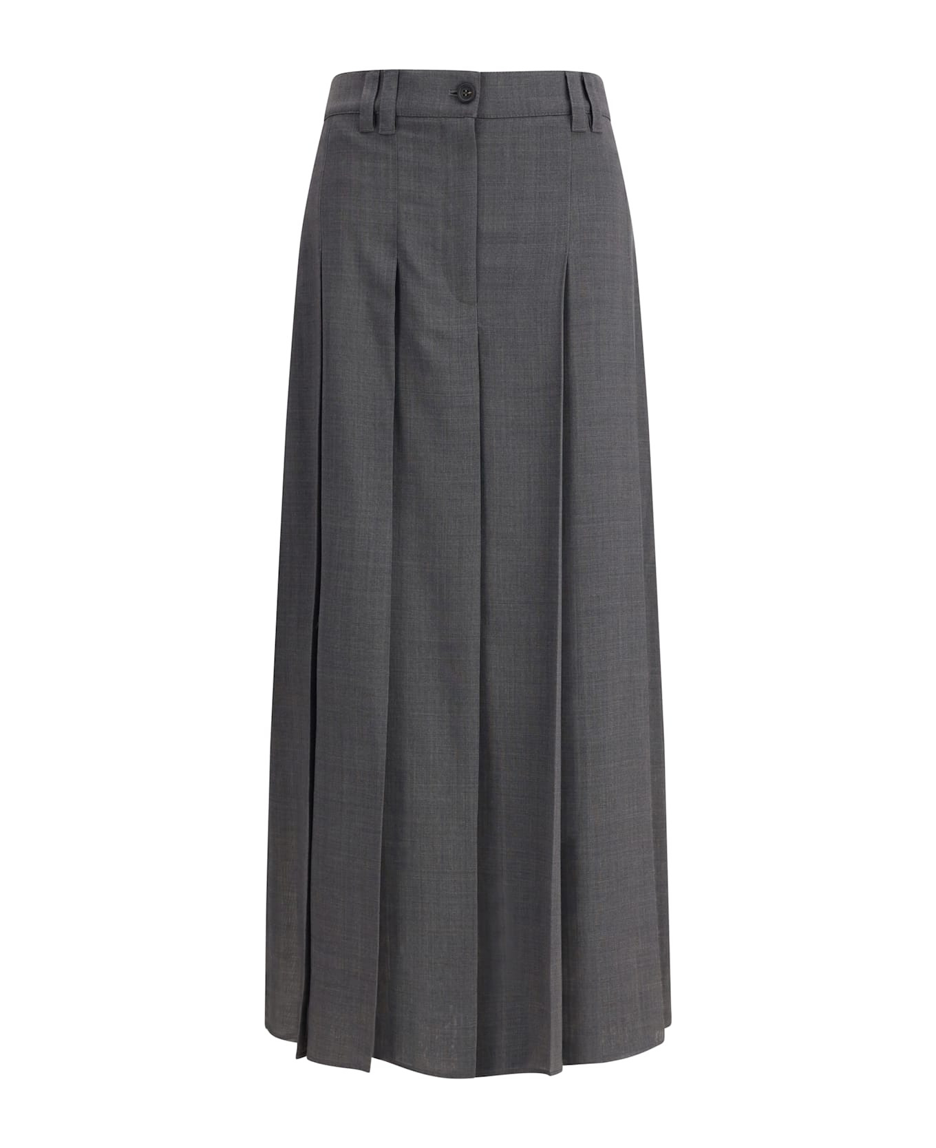 Pleated Long Skirt In Virgin Wool Techno Gauze