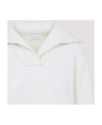 Brunello Cucinelli Panama White Wool Polo Neck Sweater. Crafted in wool, cashmere and silk blend. Polo neck, long sleeves, gold-tone cuffs, straight hem, knitted design, ribbed all-over. Made in: Italy Color: Panama Model number: M16725102C2723