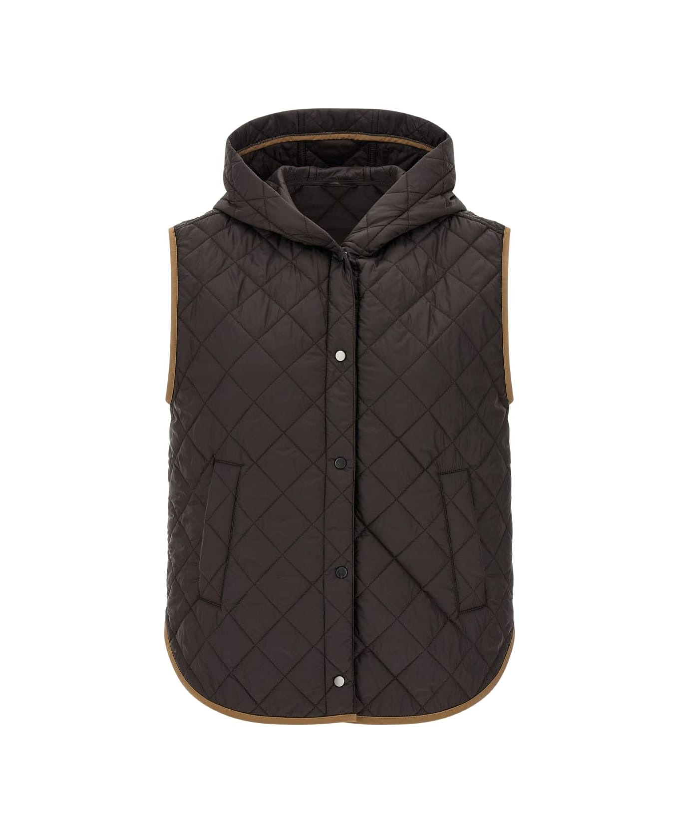 brown padded snap button closure side pockets contrasting trim hood Composition: 100% Nylon Made in: Italy Color: Black Model number: MR4057999C2126