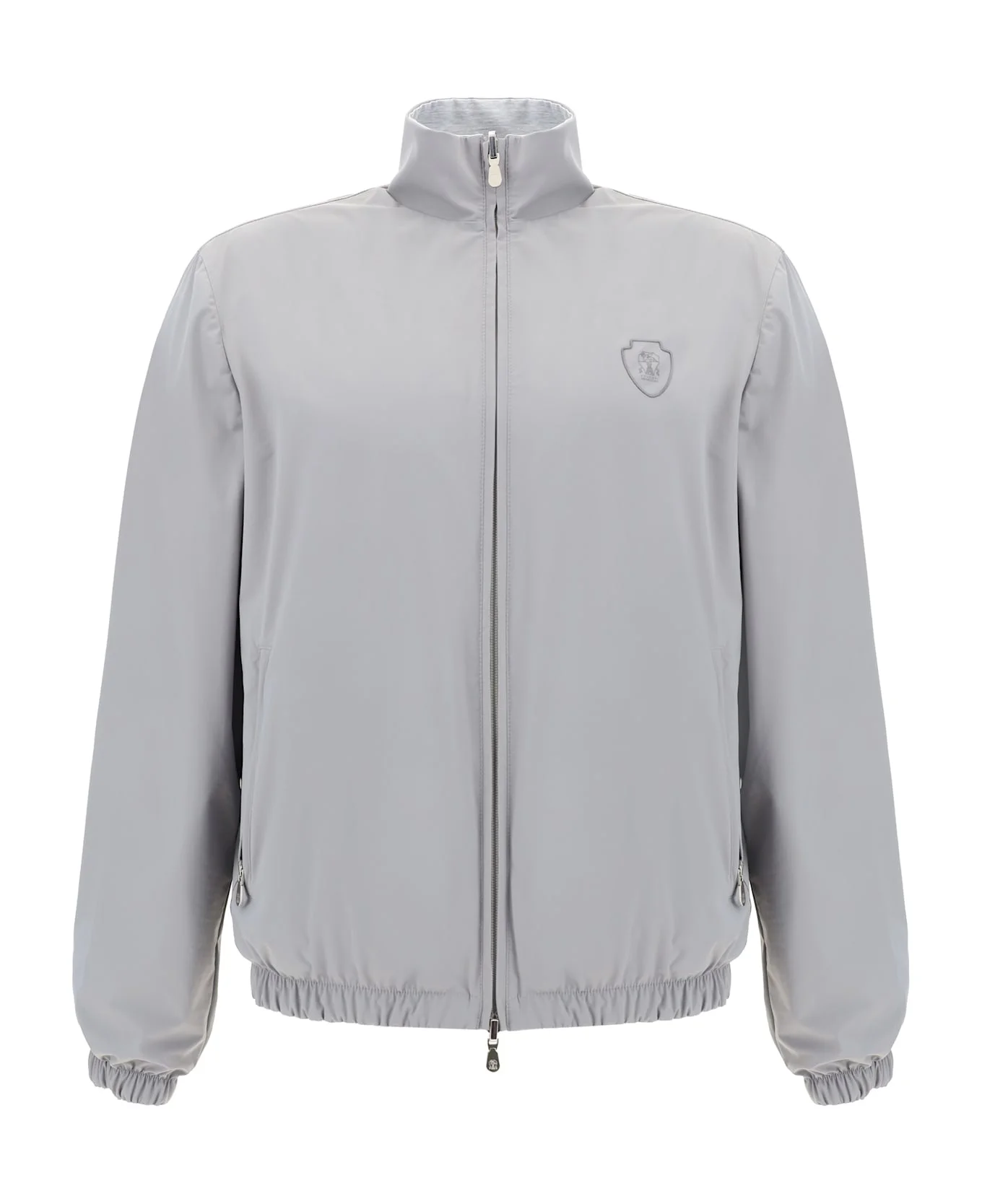 Silk and cotton jersey reversible outerwear jacket with logo