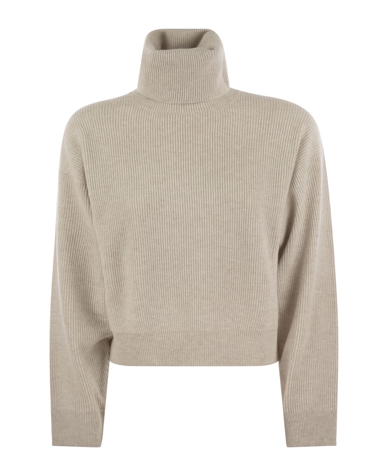 Virgin wool, cashmere and silk English rib turtleneck sweater