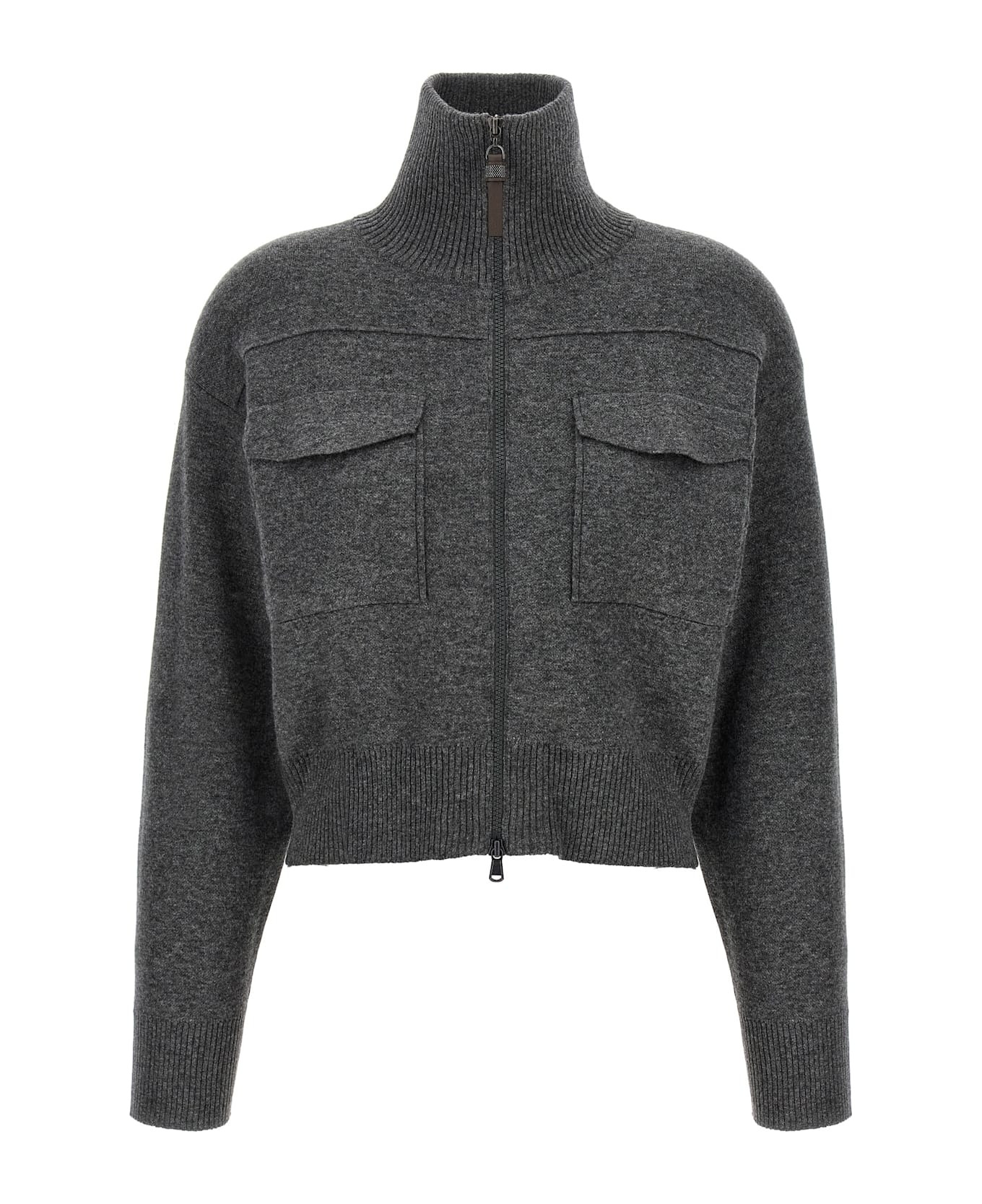 'shiny Zipper Pull' Wool Cardigan