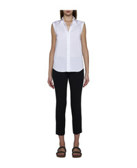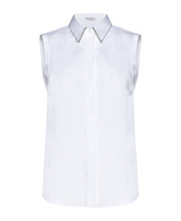 Stretch cotton poplin sleeveless shirt with shiny trim