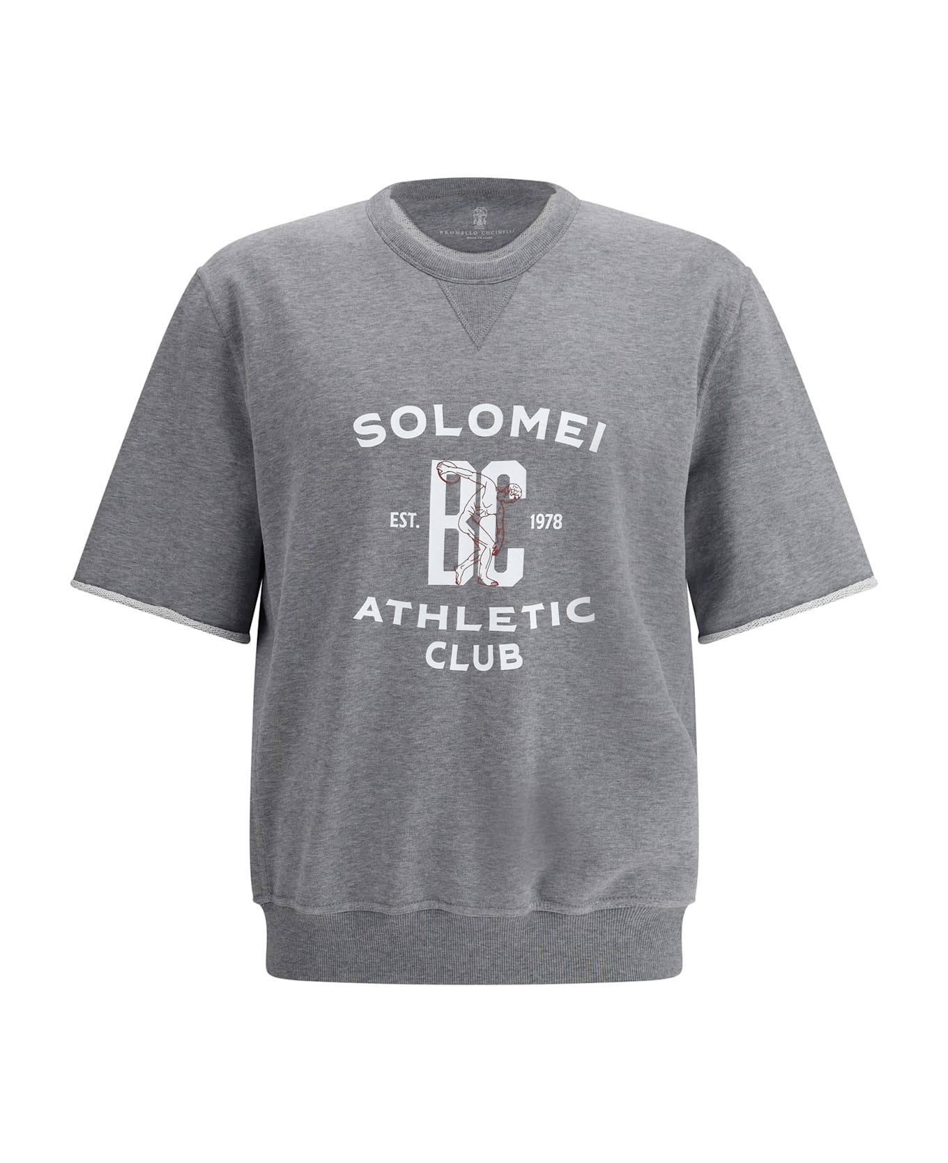 Brunello cucinelli's cotton sweatshirt is a simple yet sophisticated piece, featuring a short-sleeved design and a ribbed crew neck that adds a touch of sophistication. the sleeves feature a rolled hem, while the high ribbed hem gives a clean, modern finish. the iconic contrasting monogram on the front enhances the design with a distinctive brand detail. perfect for a casual yet stylish look, this sweatshirt combines comfort and style in a versatile garment. Composition: 100% % Cotton Made in: Italy Model number: MN05N3378GC192