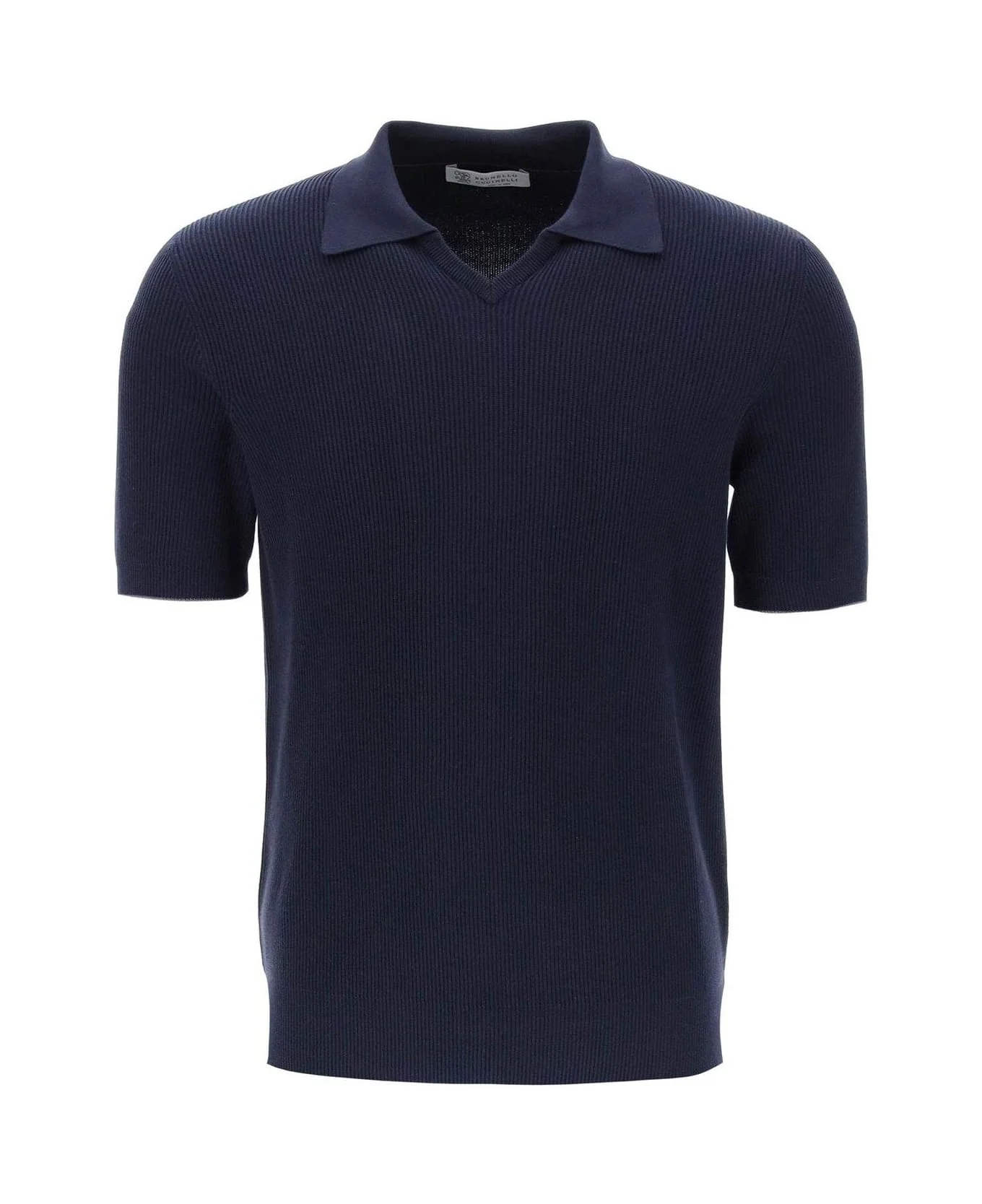 Short-sleeved Ribbed-knit Polo Shirt