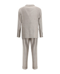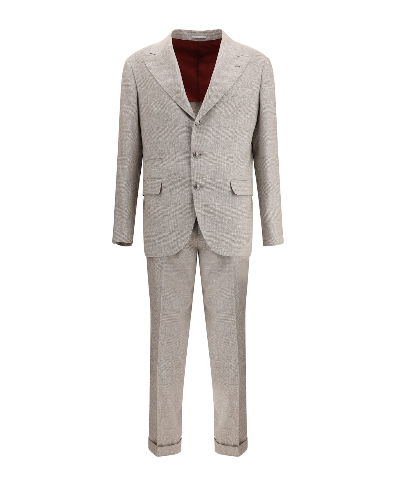 Brunello cucinelli's silk and wool suit is a perfect example of timeless elegance, made from the highest quality materials. the blazer, featuring peaked lapels, has three welt pockets with patina, adding a touch of understated sophistication. the three-button front closure lends a balanced and sophisticated look, while straight pants with turn-ups complete the ensemble with a clean, modern silhouette. the trouser closure features a zipper, hook and button, with belt loops on the waistband for added comfort and personalization. the stylish and versatile check pattern adds a distinctive detail that makes the ensemble suitable for a variety of occasions, giving it an understated yet contemporary touch of class. Composition: 51% % Silk, 47% % Wool, 2% % Kashmir/capra Hircus Made in: Italy Model number: MA479LDFV2C162