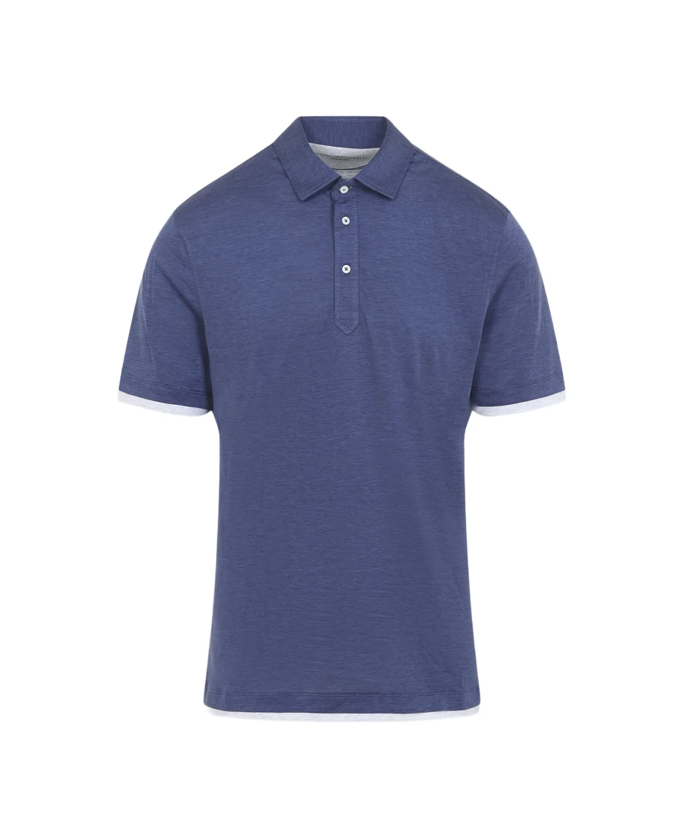 Brunello Cucinelli Blue Silk Polo. Crafted from melange blue silk and cotton blend, featuring a classic polo collar, three-button fastening, short sleeves, faux layering on the cuffs and hem. Made in: Italy Color: Denim Model number: MR8333966CTA27
