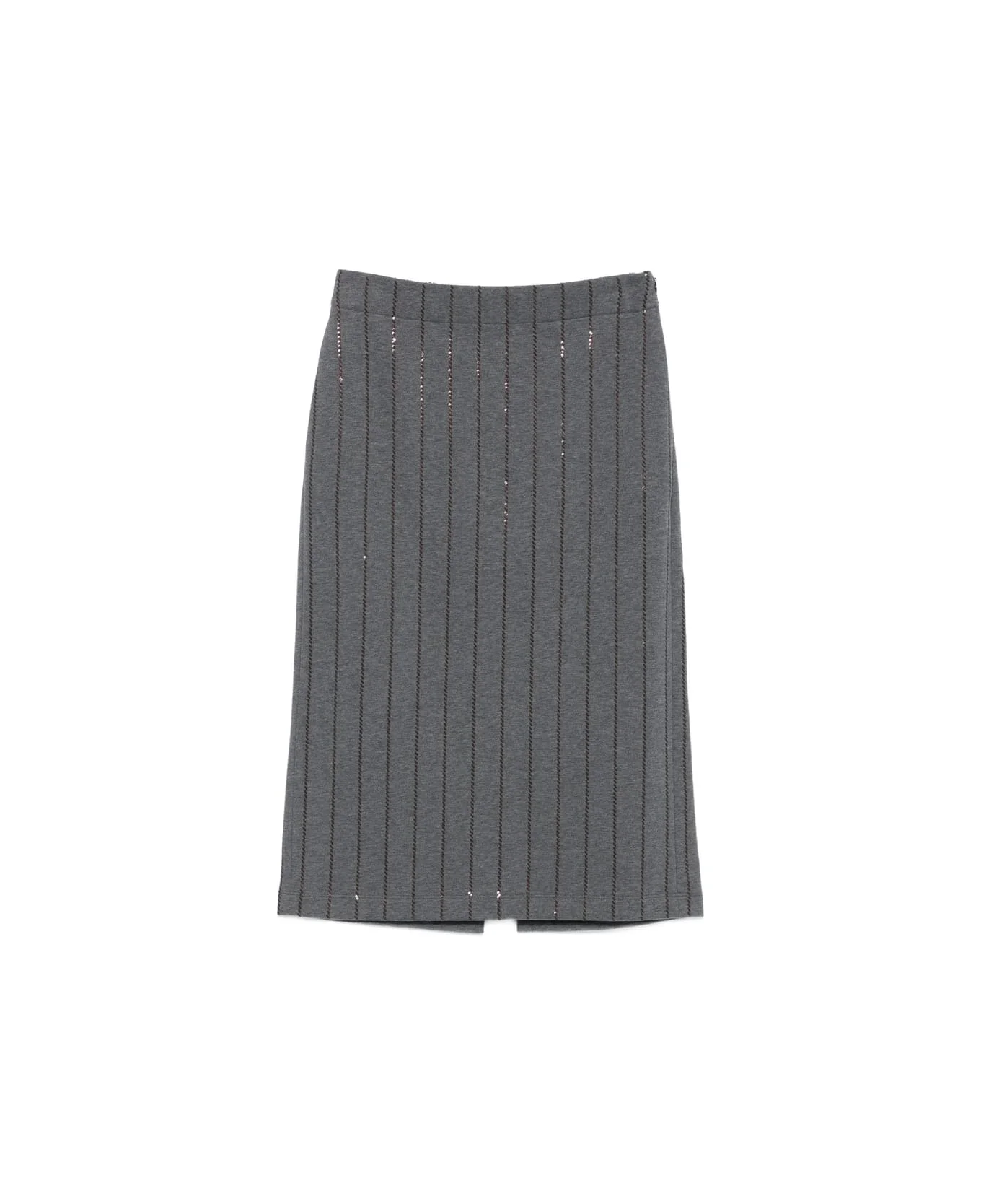 Cotton smooth French terry midi skirt with dazzling chalk stripe embroidery