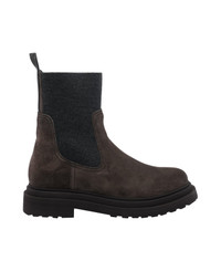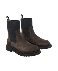Suede Boot With Knitted Insert And Precious Loop Detail