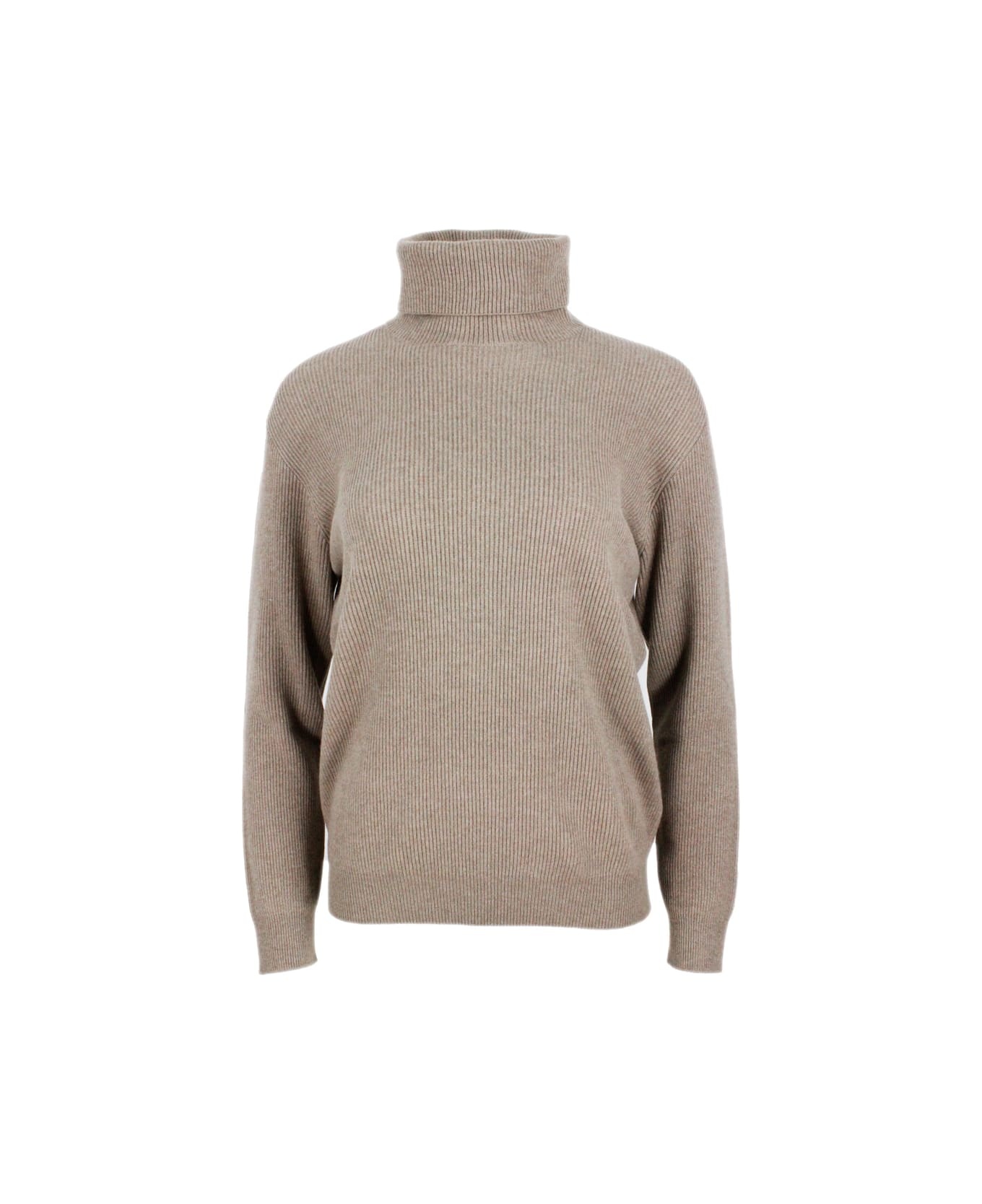 Cashmere English rib turtleneck sweater with monili