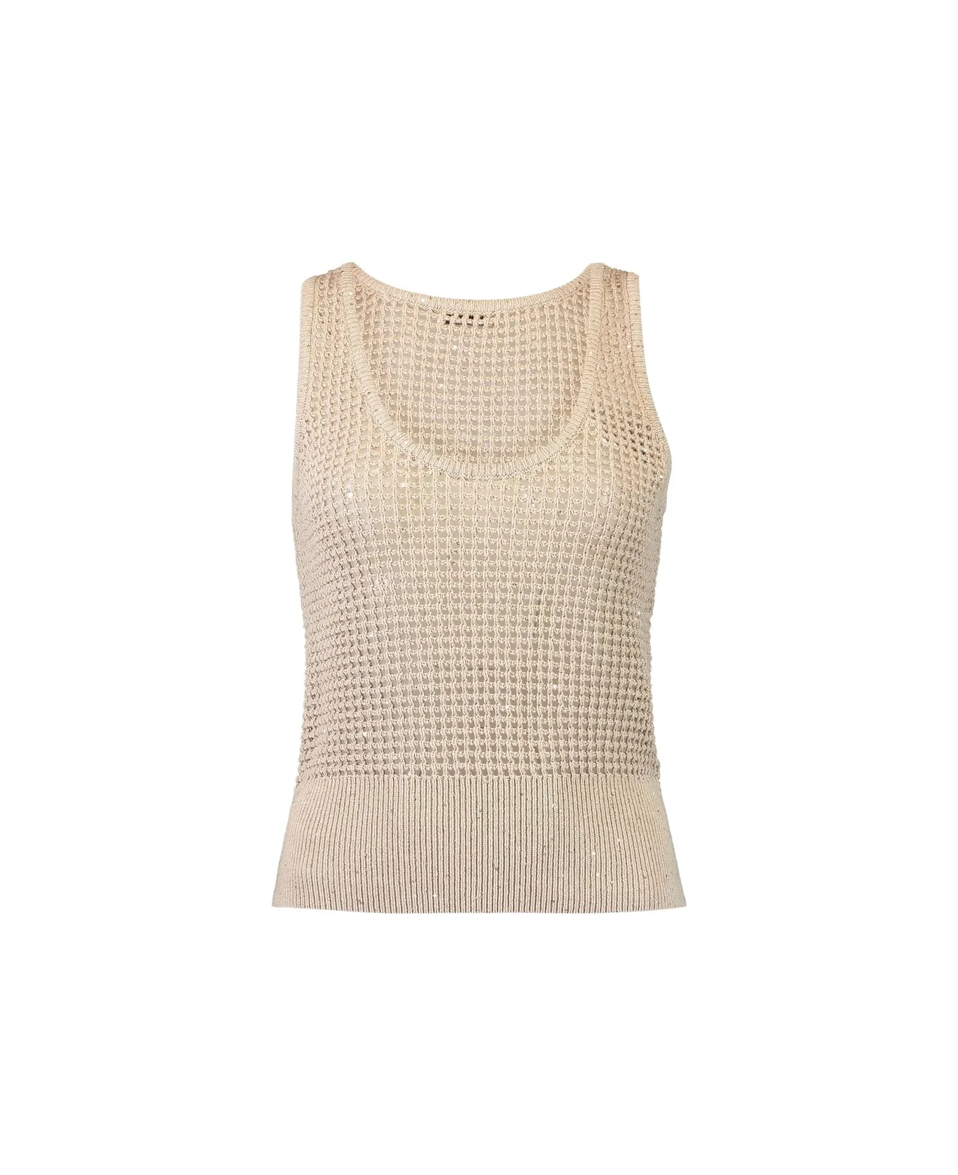 beige open knit scoop neck sleeveless ribbed trims Made in: Italy Color: NEUTRALS Model number: MDV762110C069